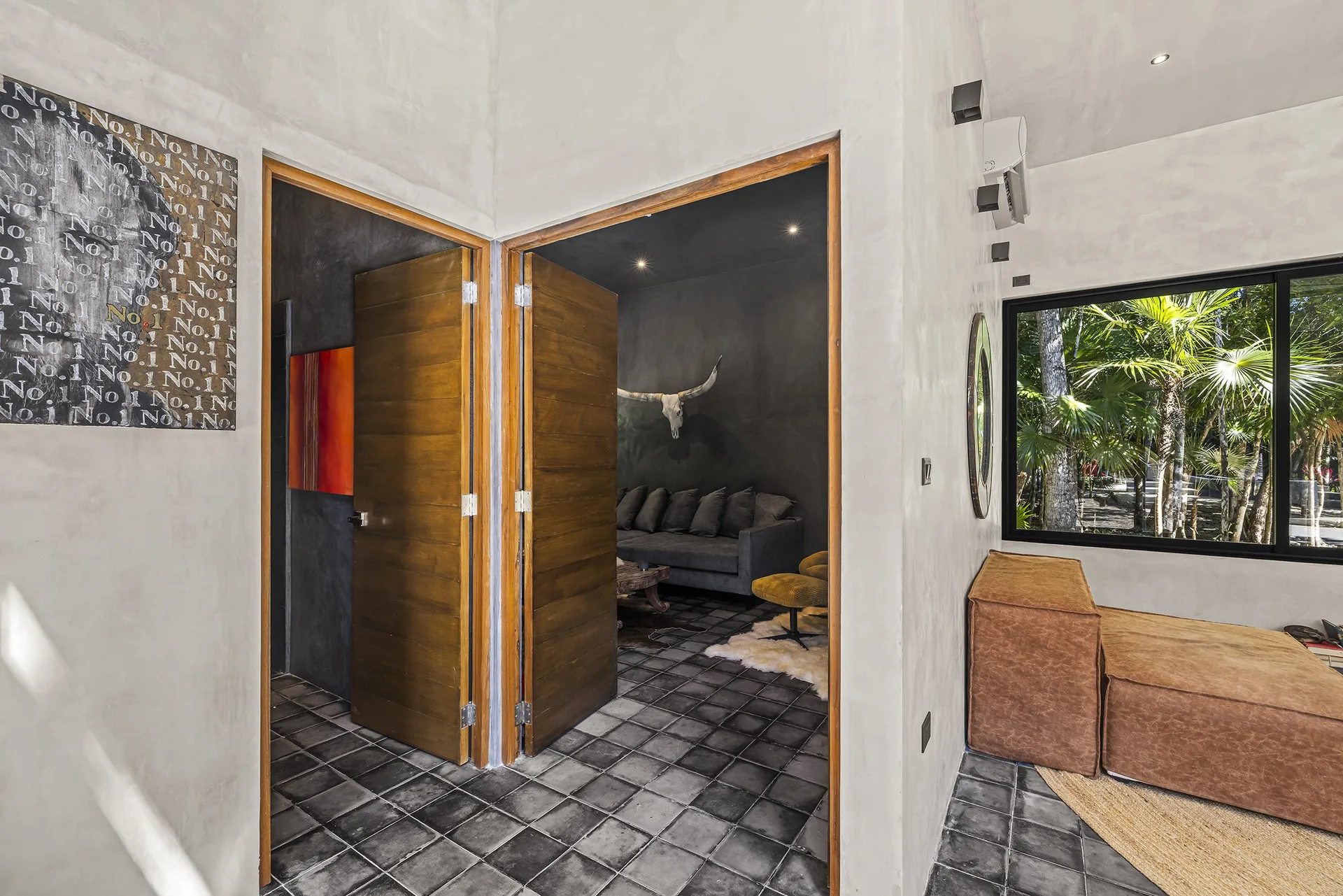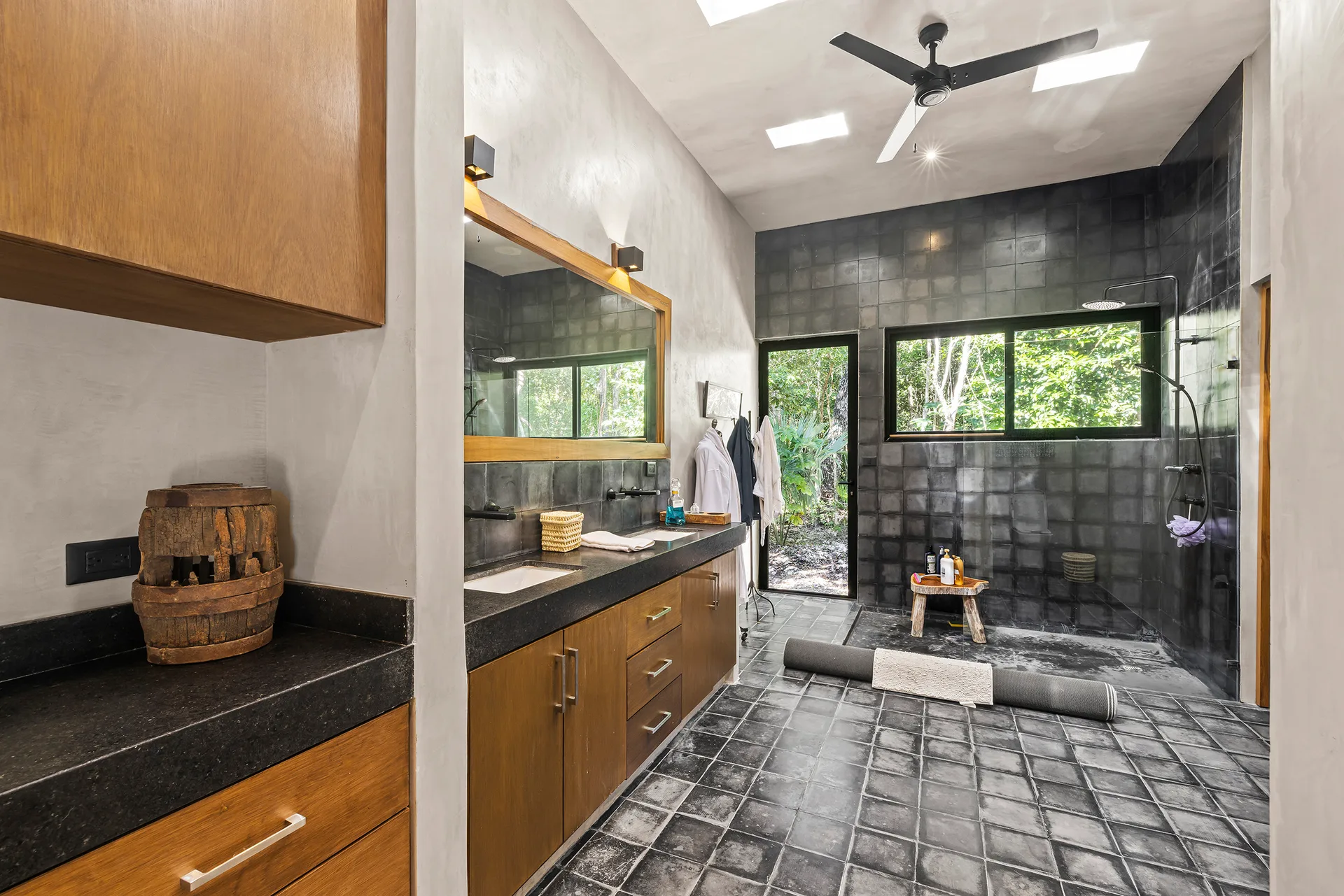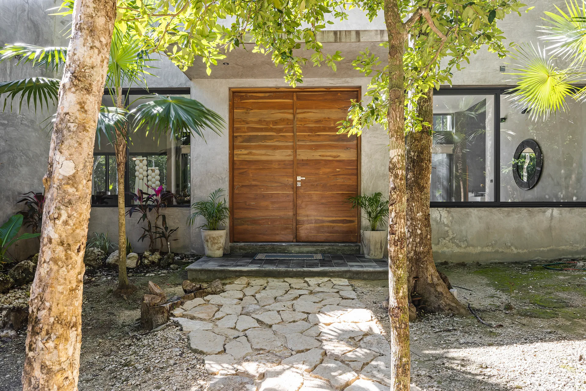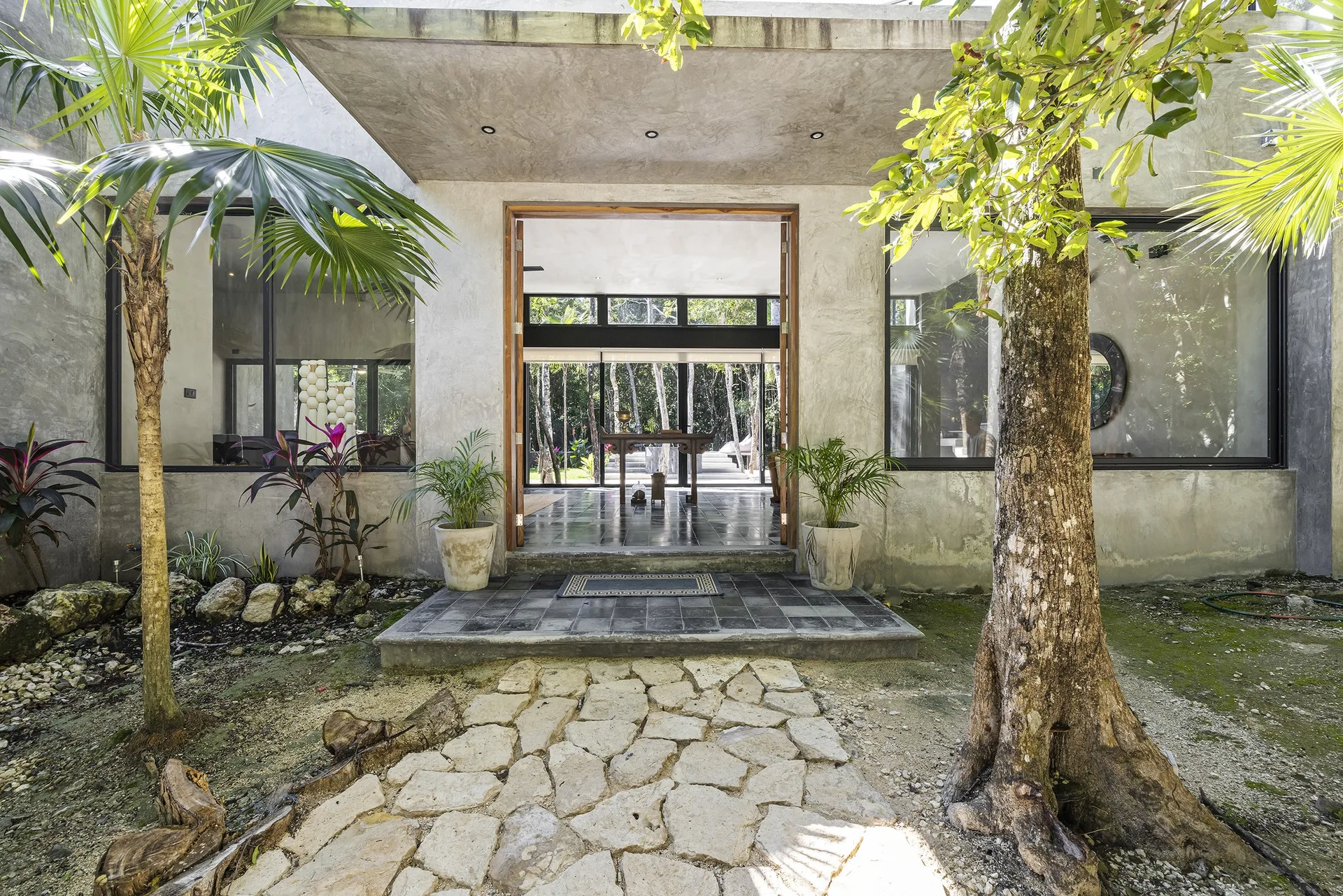 The home is entirely off-grid, powered by a sophisticated 17, 400W solar panel system with a 60kWh lithium-ion battery, and includes reverse osmosis filtered water. The property holds potential for a private cenote.