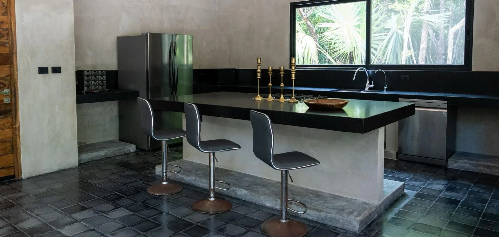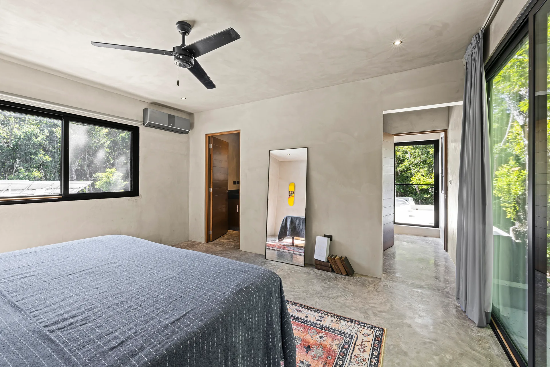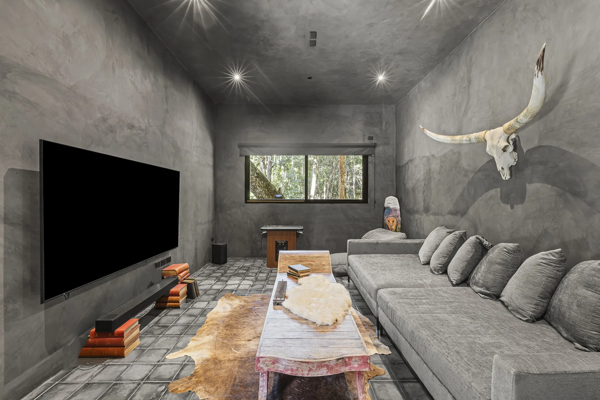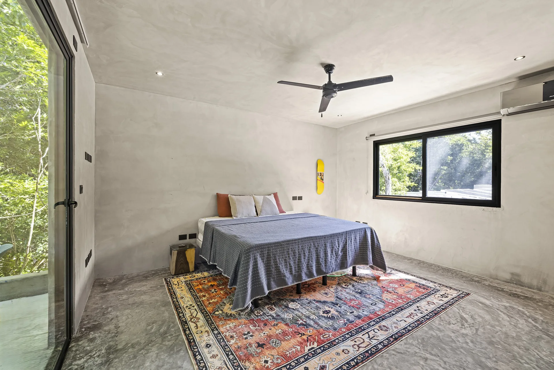 The home is entirely off-grid, powered by a sophisticated 17, 400W solar panel system with a 60kWh lithium-ion battery, and includes reverse osmosis filtered water. The property holds potential for a private cenote.