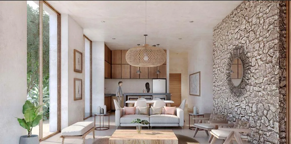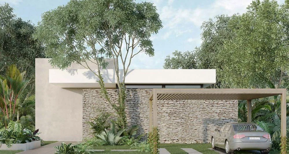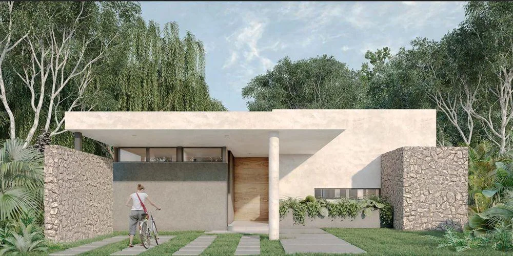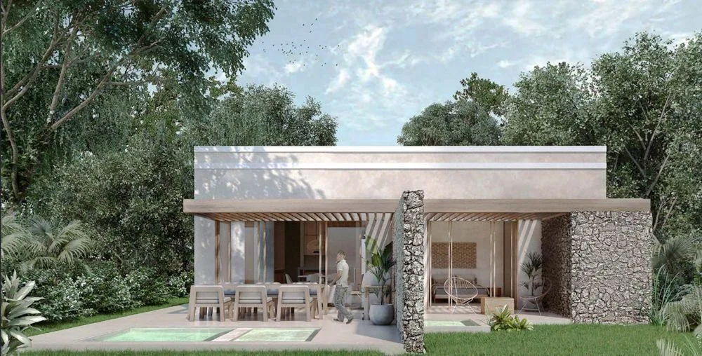 These homes are situated within a gated community at the Xpu-Ha Beach Residential Resort. The location is in the Riviera Maya, approximately 20 minutes south of Playa del Carmen and 30 minutes from Tulum. The area provides access to beaches and is surrounded by natural features.