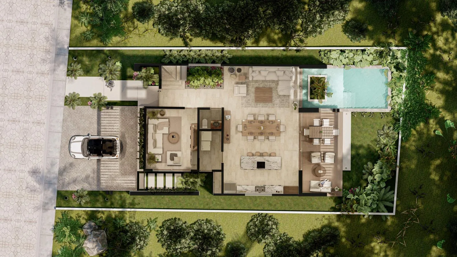 Residents have access to a private beach club.