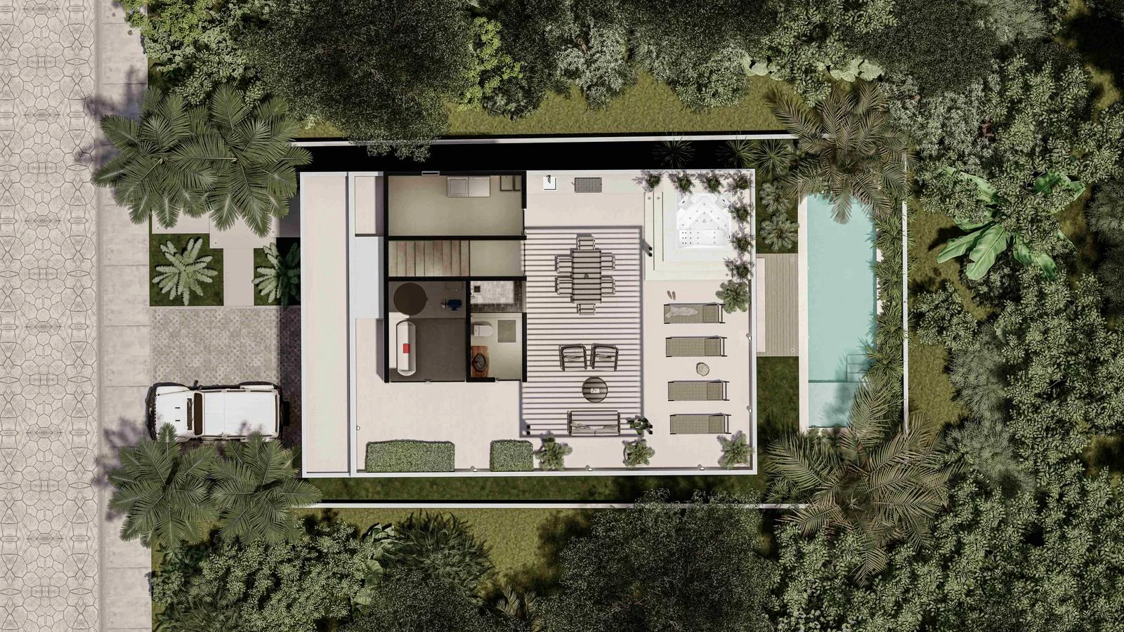 This luxury villa is situated within the Tulum Country Club. The property is constructed on a 300 square meter land plot and encompasses 419. 65 square meters of built area.