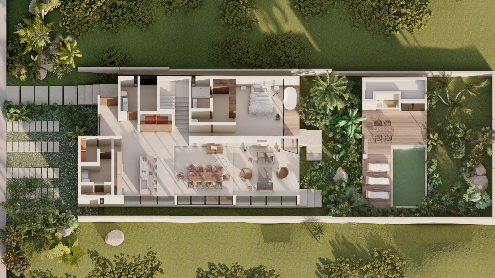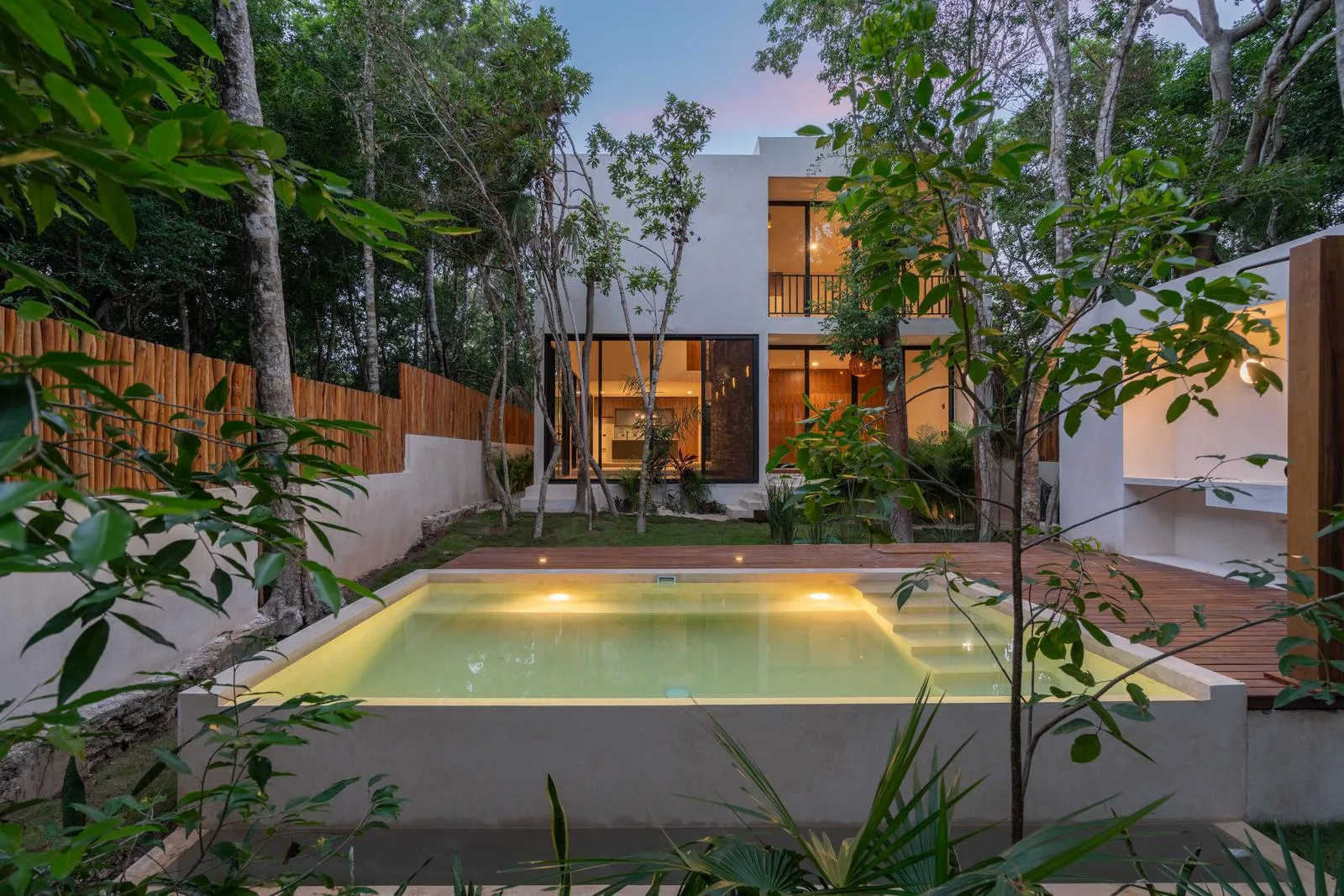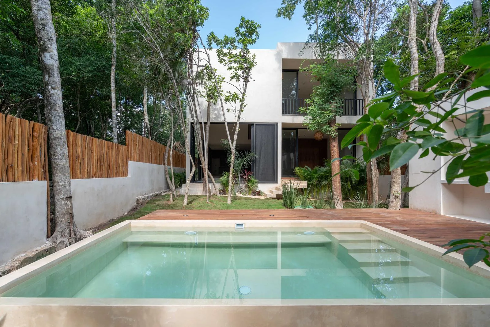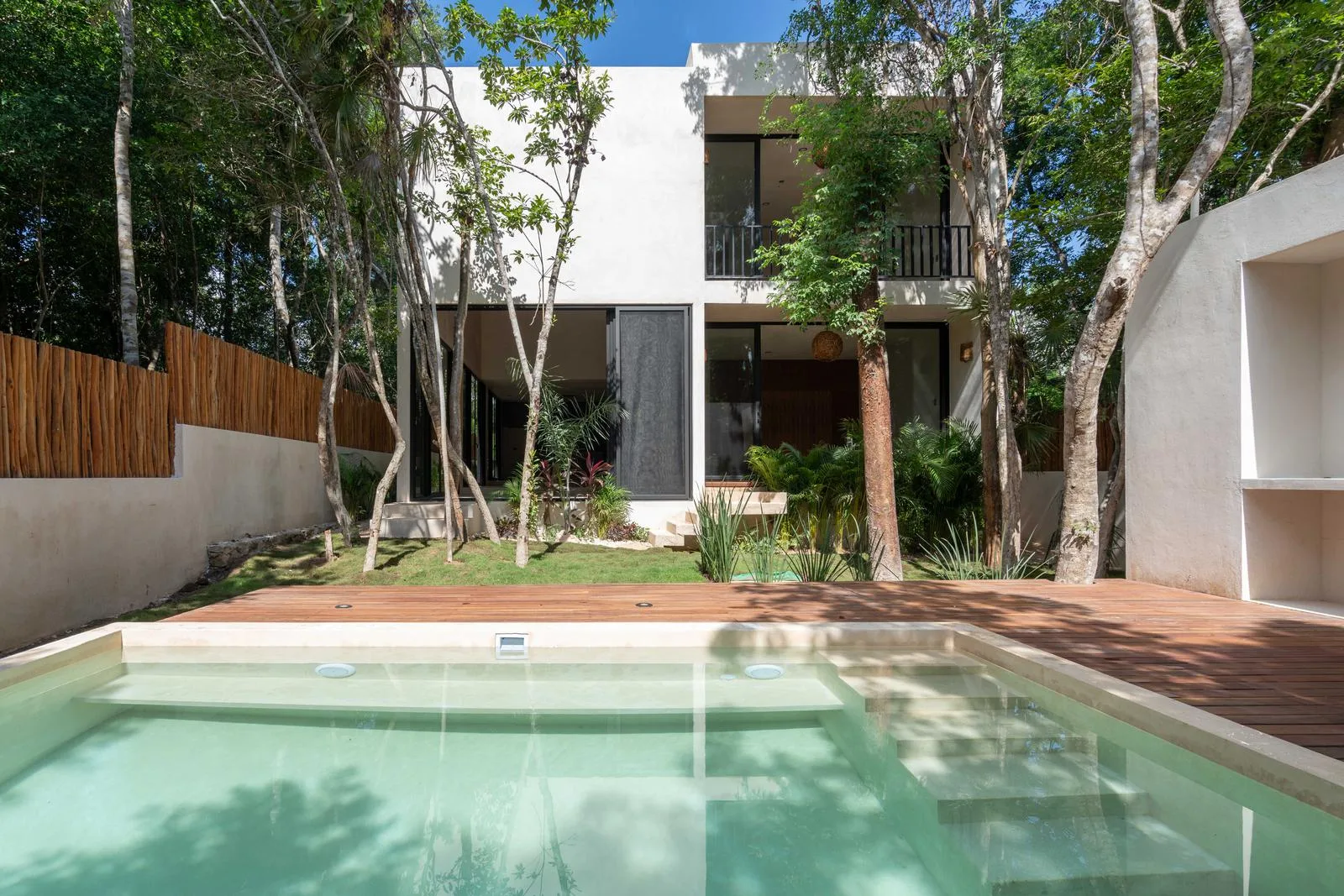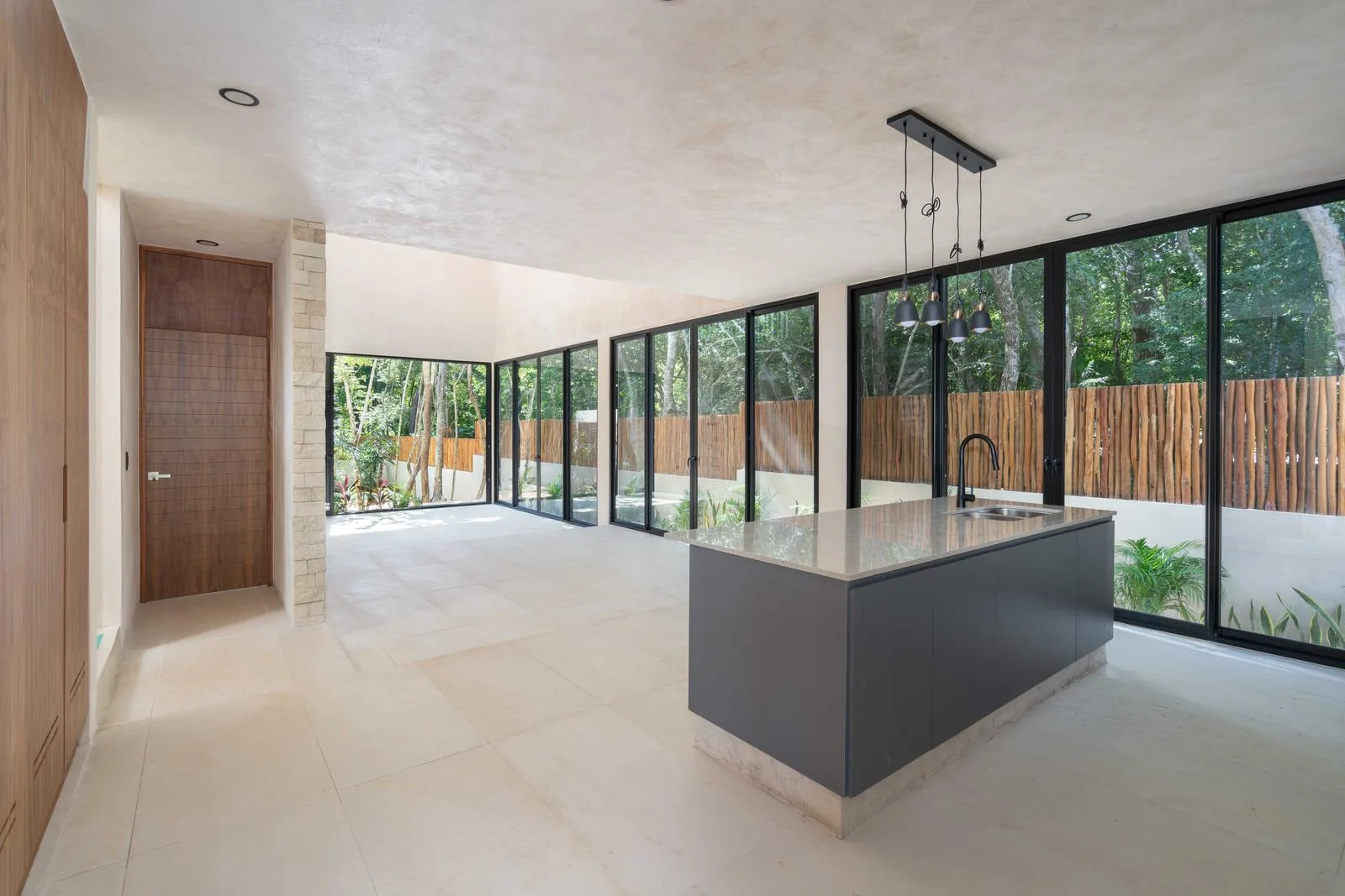 This new, well-equipped home is for sale, offering high-quality spatial design and abundant natural light. It is located within Villas Caribe in Bahía Príncipe, near the Kay Beach Club and the PGA Riviera Maya golf course.