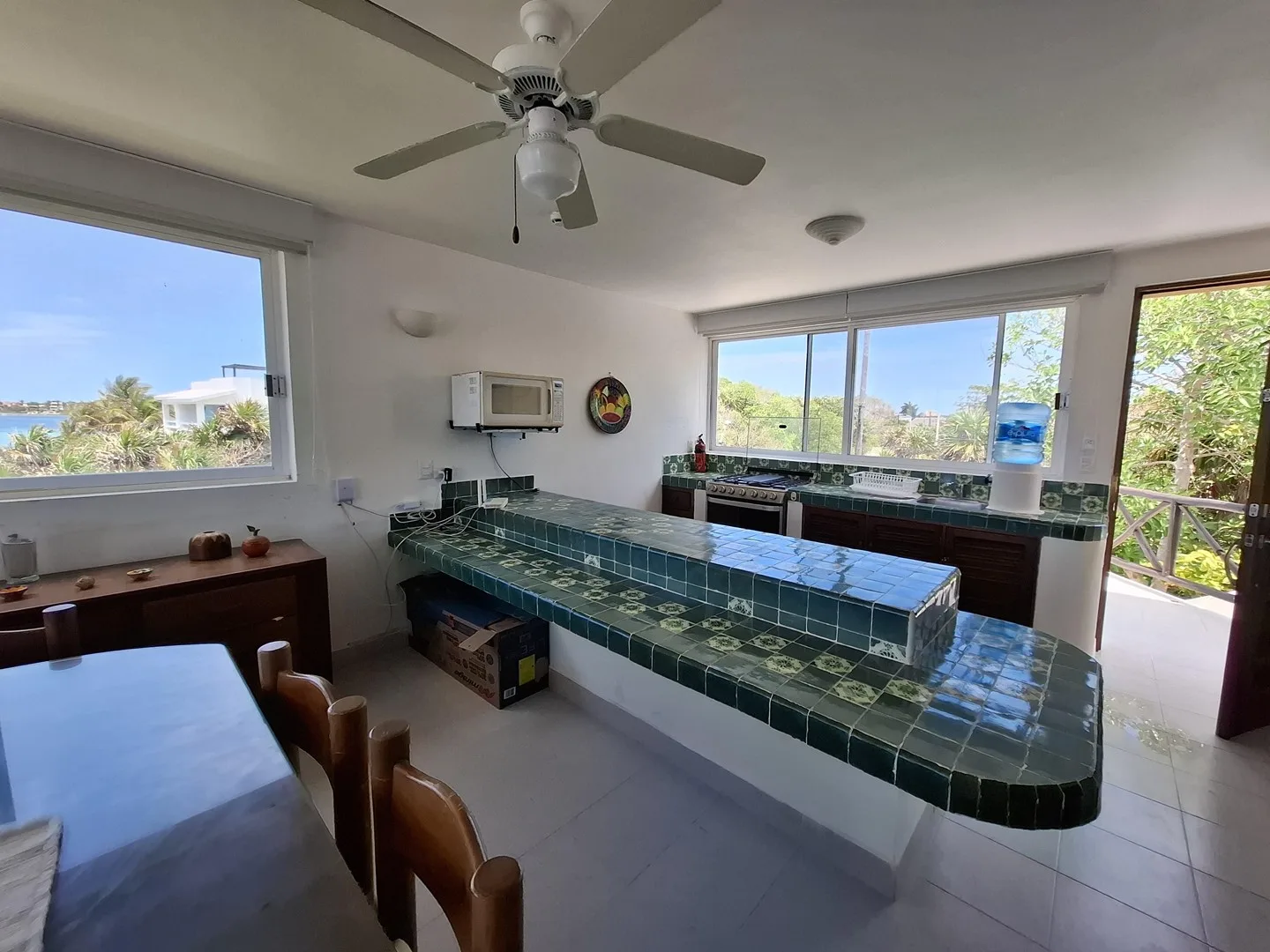 Casa Jaguar is an oceanfront villa located in the peaceful bay of Akumal, a destination in the Riviera Maya. The property is just steps away from the Yal-Kú cenote and lagoon, an area known for its crystal-clear waters and marine life.