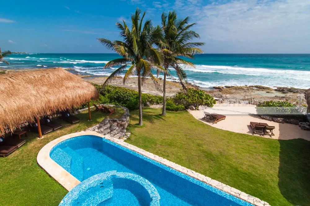Oceanfront Villa with Nine Suites, Private Pool, and Rooftop Terrace South of Akumal
