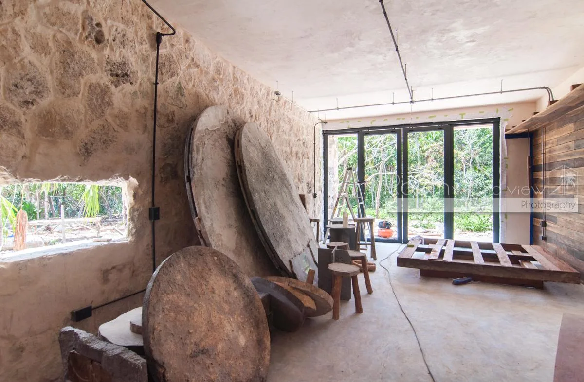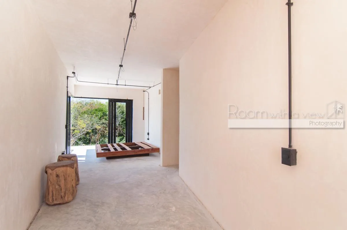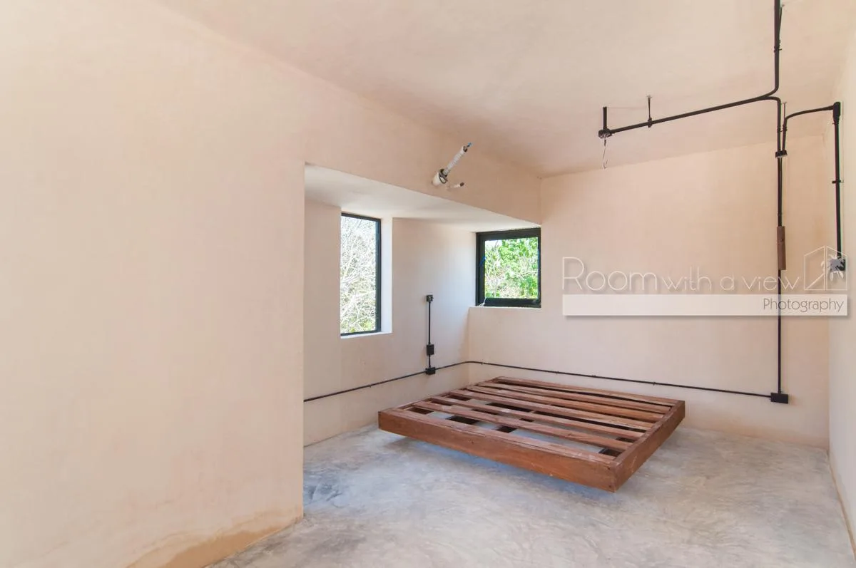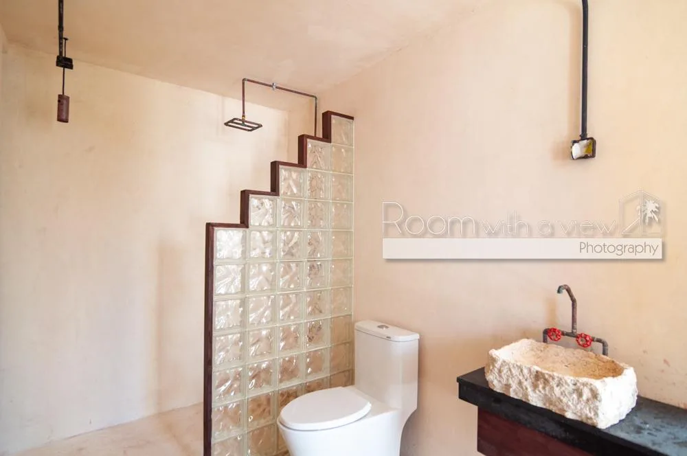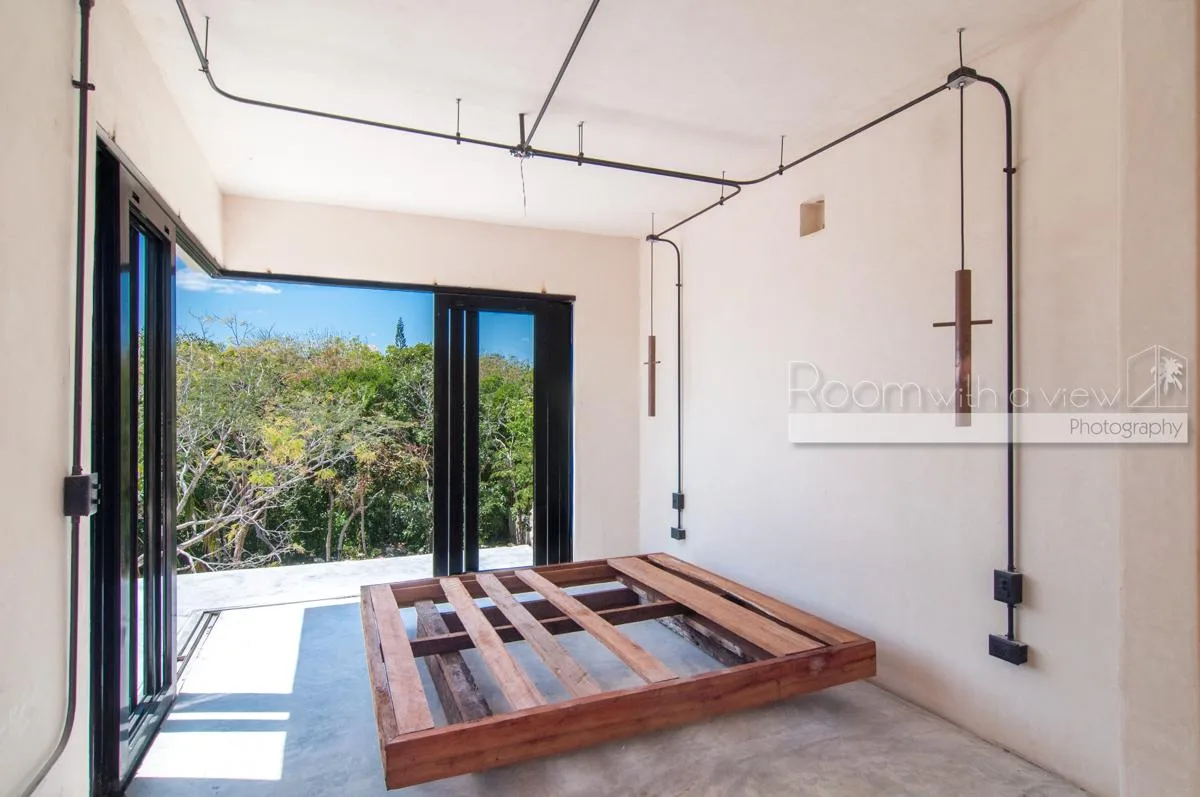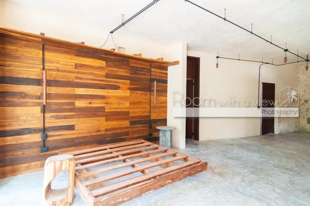 The home includes a balcony, a covered patio, and a private swimming pool. It is furnished and comes with three parking spaces. Thoughtful details include handcrafted hardwood furnishings, natural stone sinks, and copper lighting throughout.