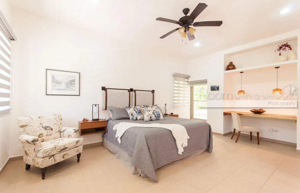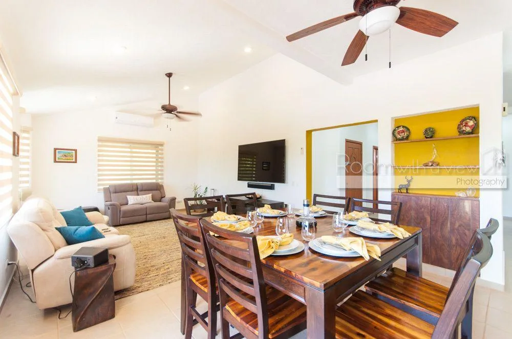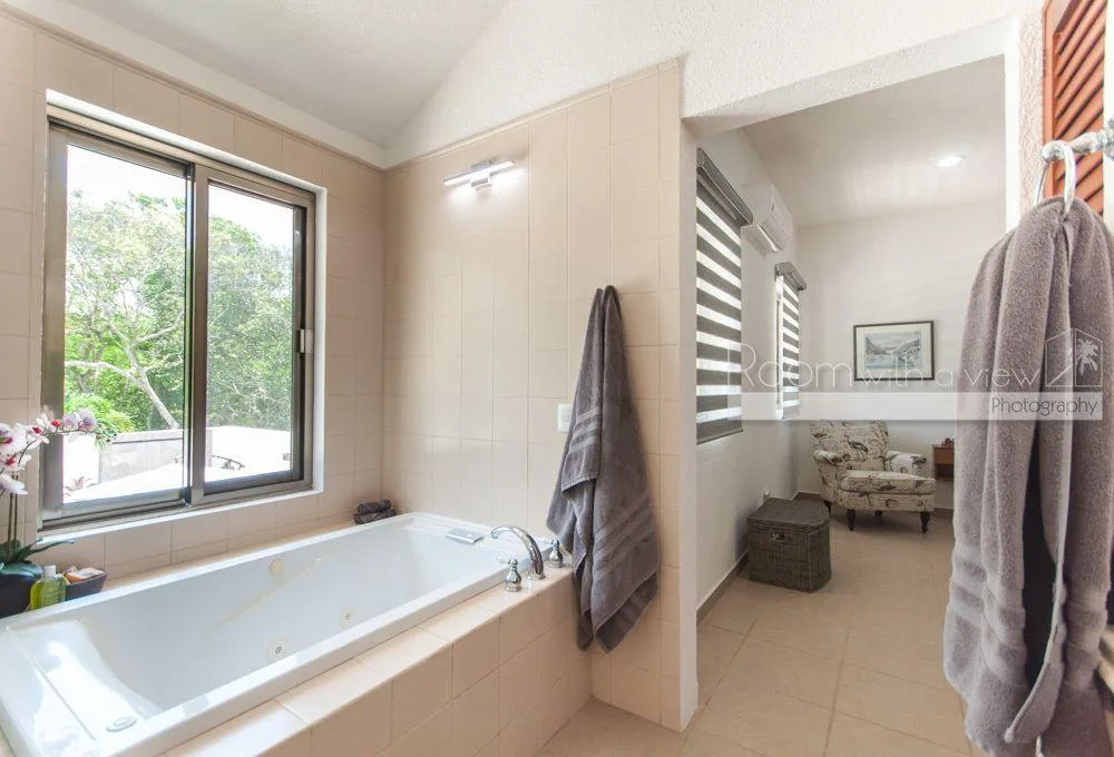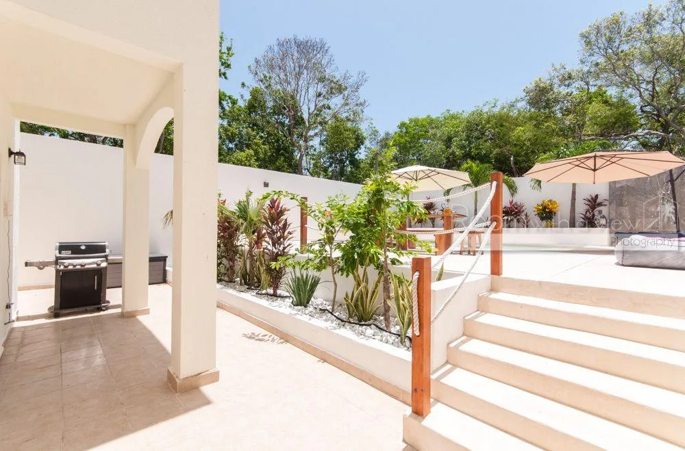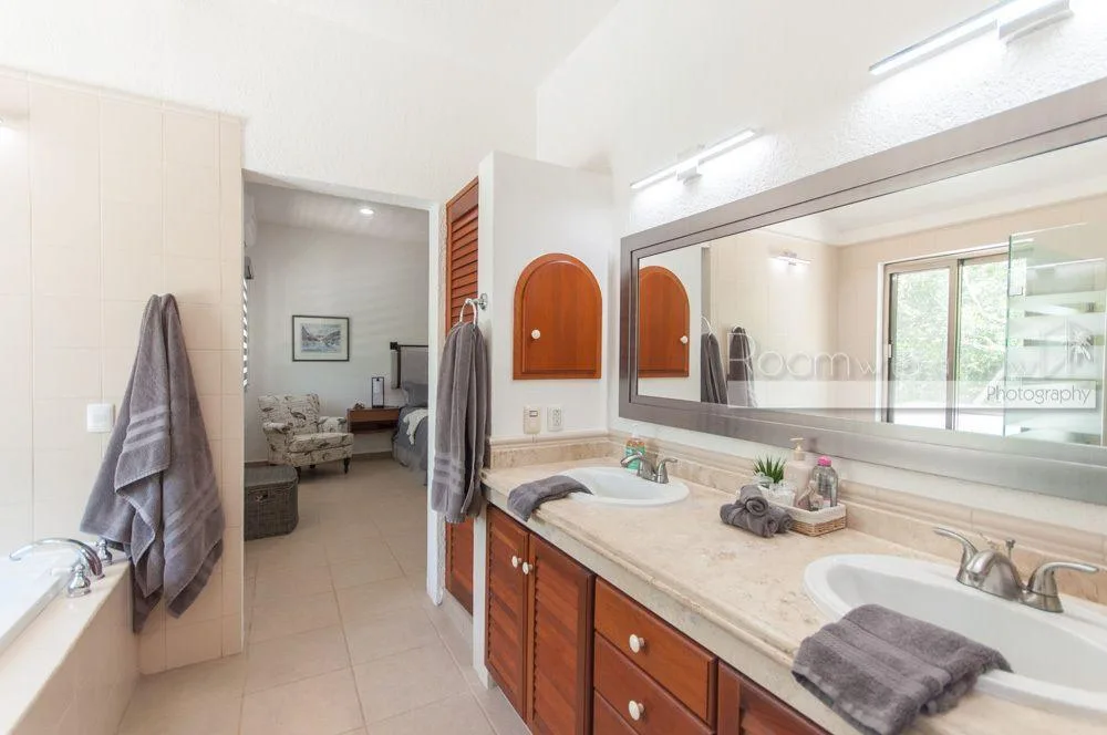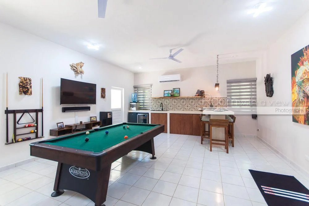 This two-story luxury villa is situated within the Grand Sirenis complex in Akumal. The property offers inviting indoor-outdoor spaces within a 717-acre Riviera Maya resort community. The complex features lush green spaces with several cenotes and walking paths. The villa is surrounded by jungle and is minutes from the Caribbean coast, close to local goods and services. The residential community has a gated entry and 24-hour security.