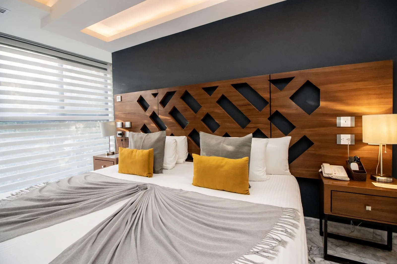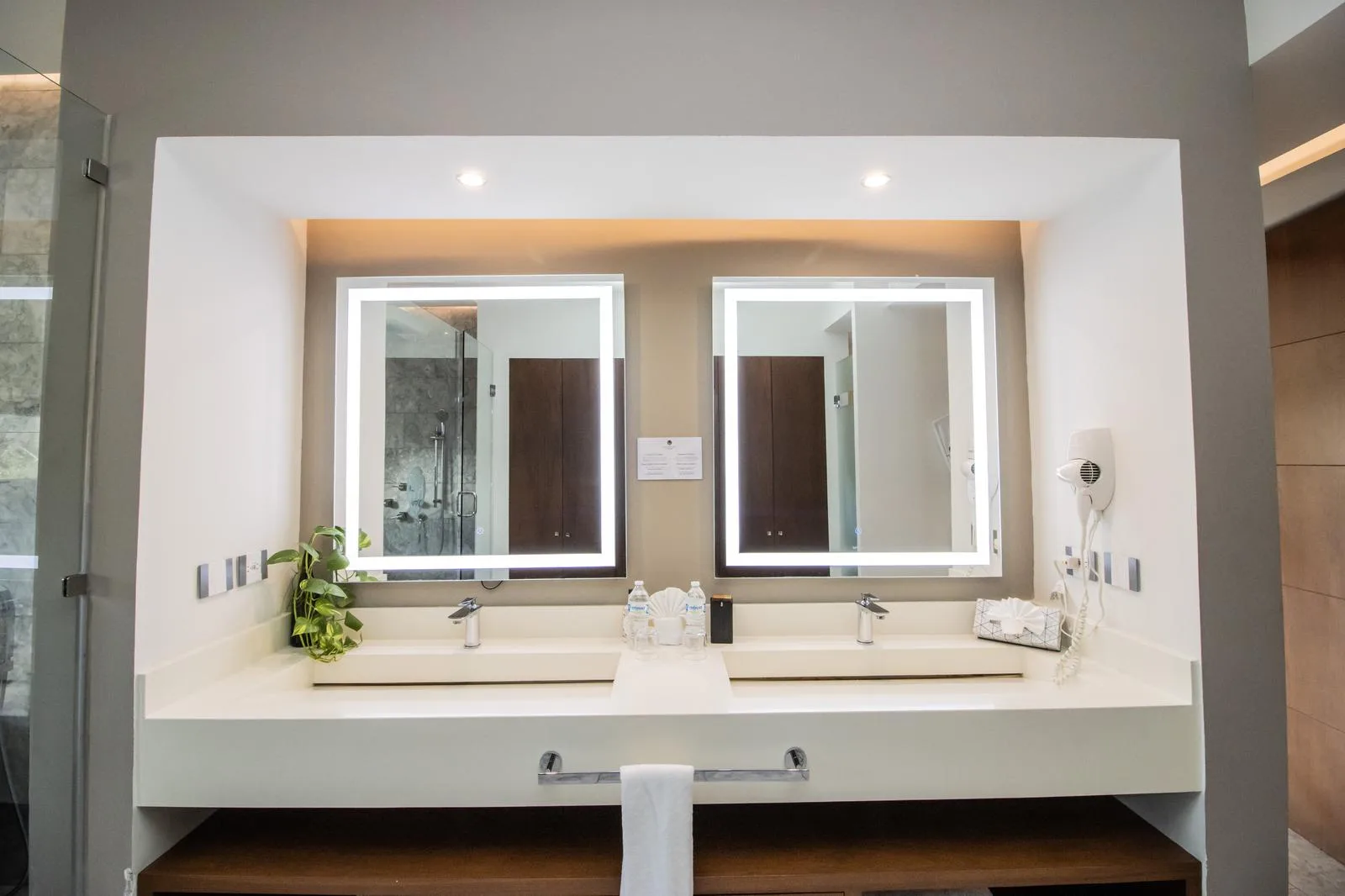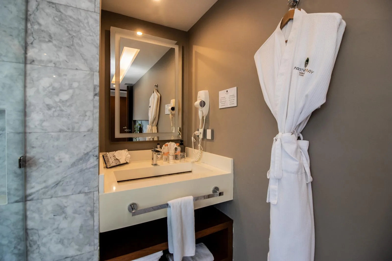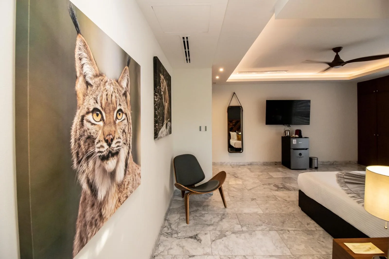 Each apartment provides ample space with its own living area, a minibar, and direct access to various terraces. The bathrooms feature high-quality finishes, including double sinks and bathtubs.