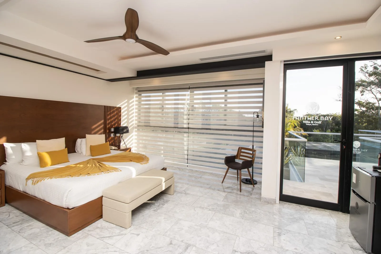 The property is within the Tulum Country Club, which offers amenities including a gym, a Beach Club, a golf academy, tennis and Padel tennis courts, a PGA golf course, a spa and wellness center, restaurants and shops, and a 24/7 security booth with controlled access.