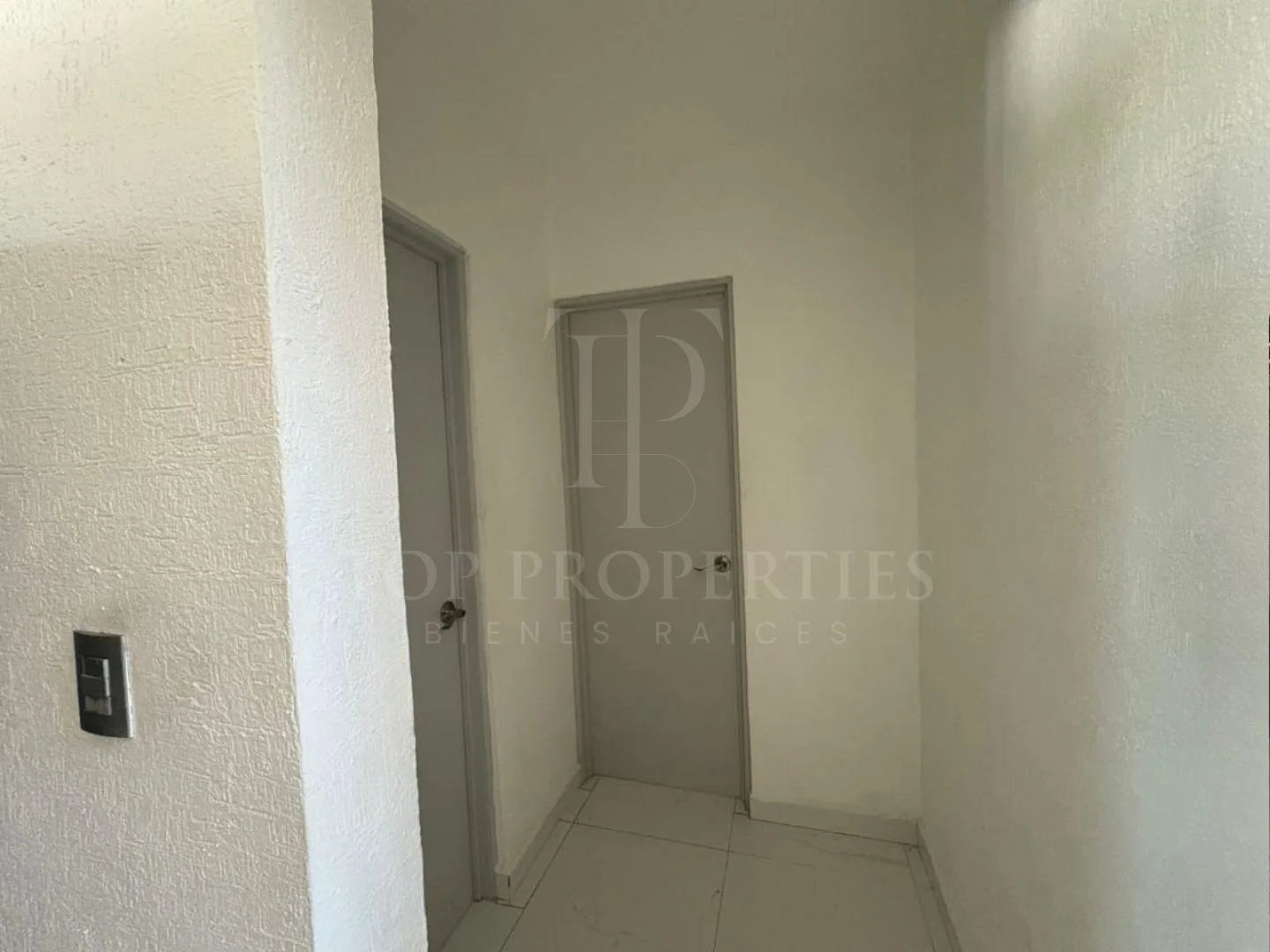 There is a designated parking space and a visitor area. A green area for pets is also provided. The property is located in Bahia Azul.