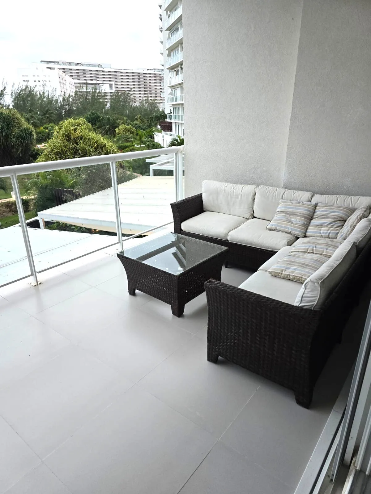 The building provides luxurious amenities including an ocean-view swimming pool, a children’s play area, and landscaped gardens with palapas. It offers 24-hour security, direct beach access, and on-site parking.