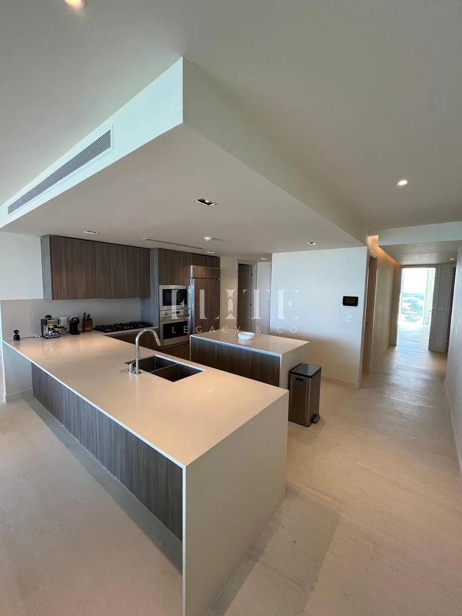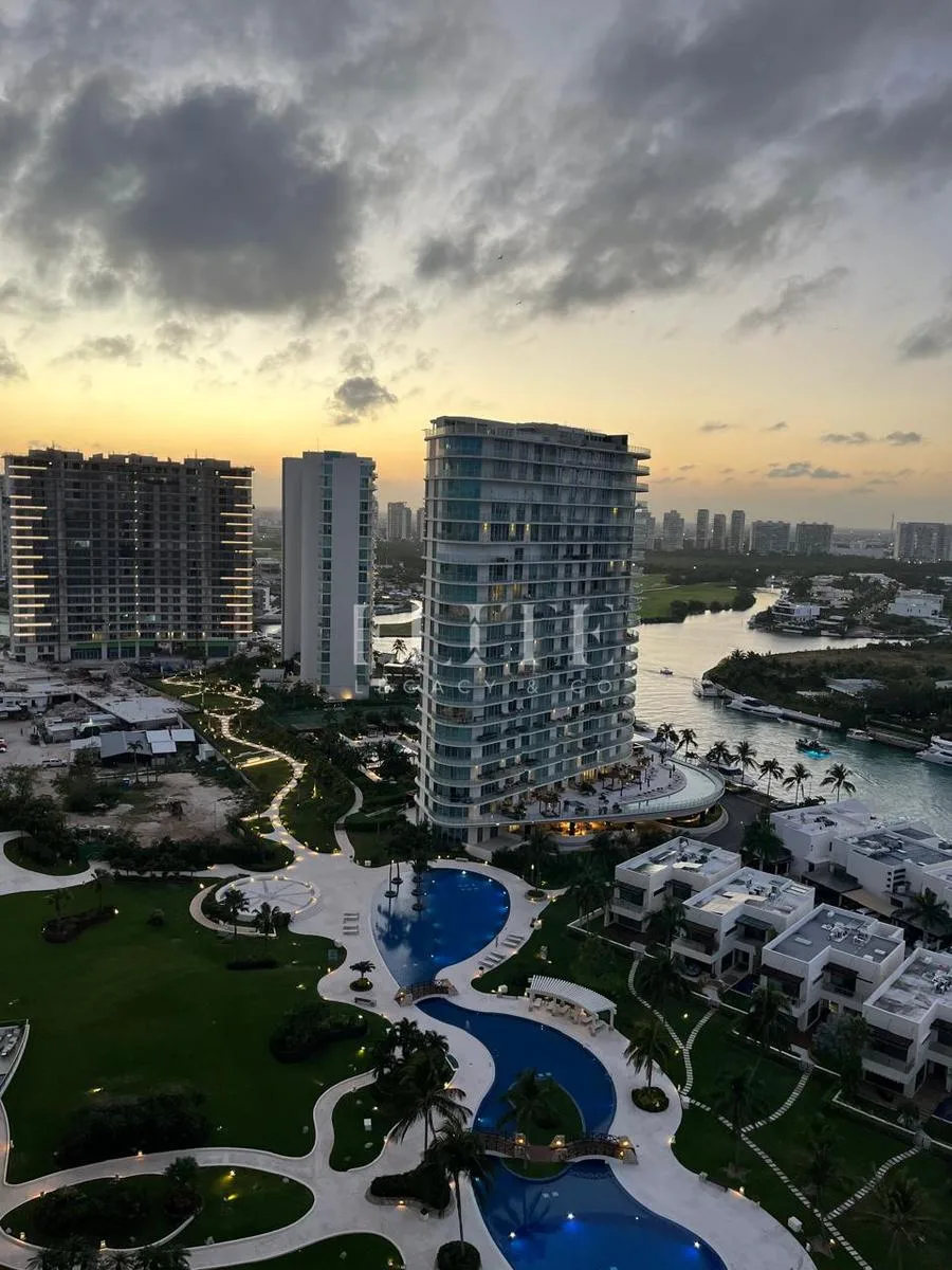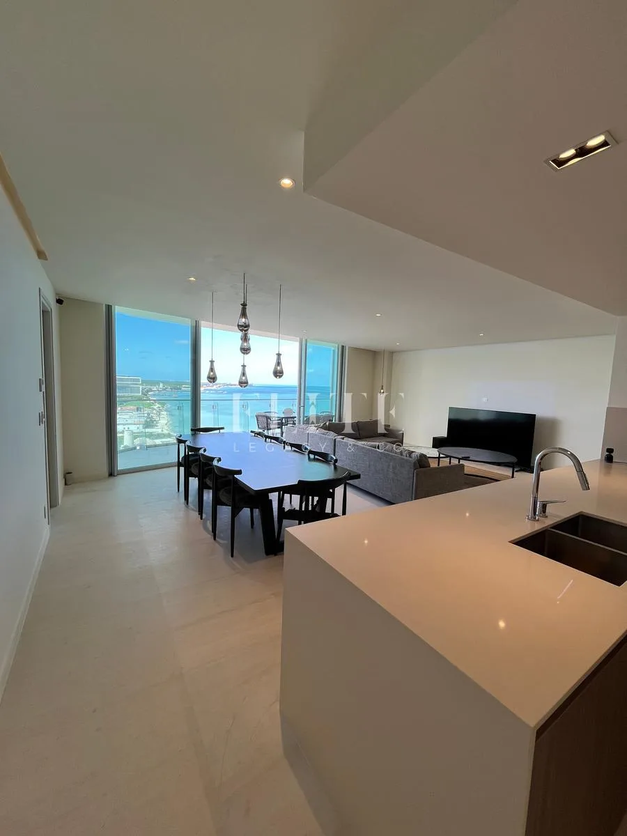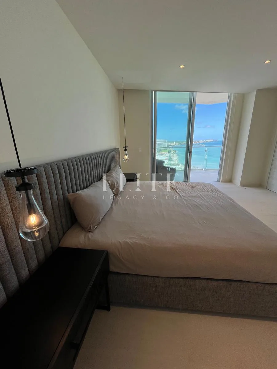 The apartment is furnished and in perfect condition, with all furniture in excellent state. It is located on the 18th floor and has a construction area of 260 square meters. The unit features direct beach access and incredible views of the sea and Puerto Cancún canals.