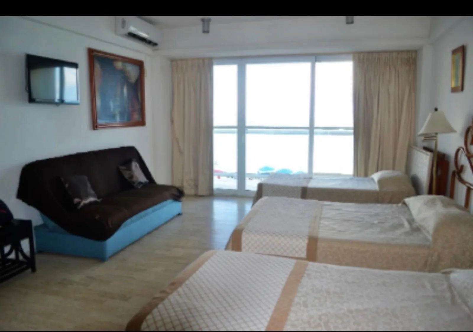 The complex features direct access to the beach and a swimming pool. Common areas offer WiFi, and the building includes a lobby and a snack bar. There is 24/7 security with controlled access, elevators, and wheelchair accessibility.
