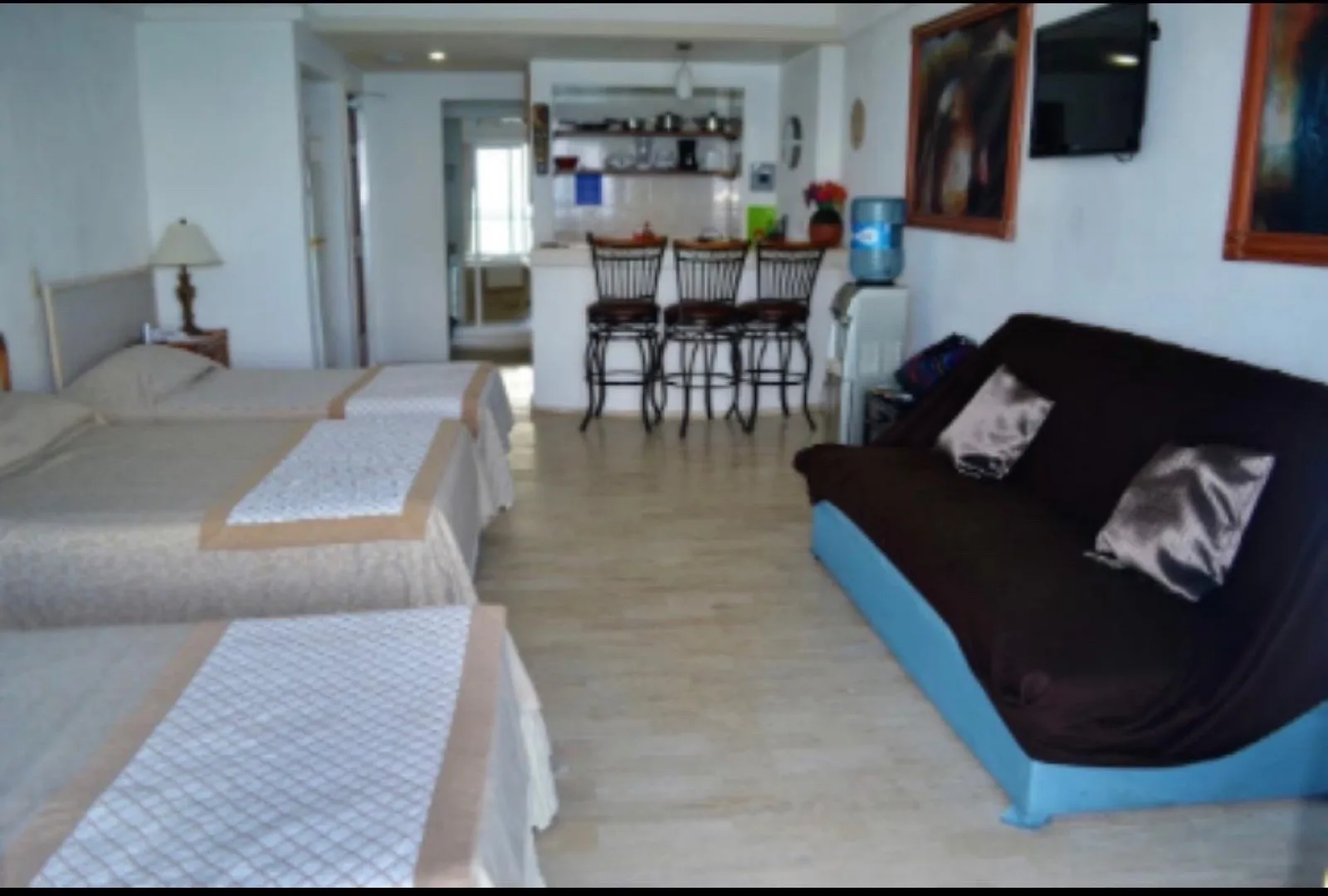 This apartment for sale is located within a tourist complex directly facing the Caribbean Sea in Cancun's Hotel Zone. The property offers views of both the sea and the Nichupte Lagoon.