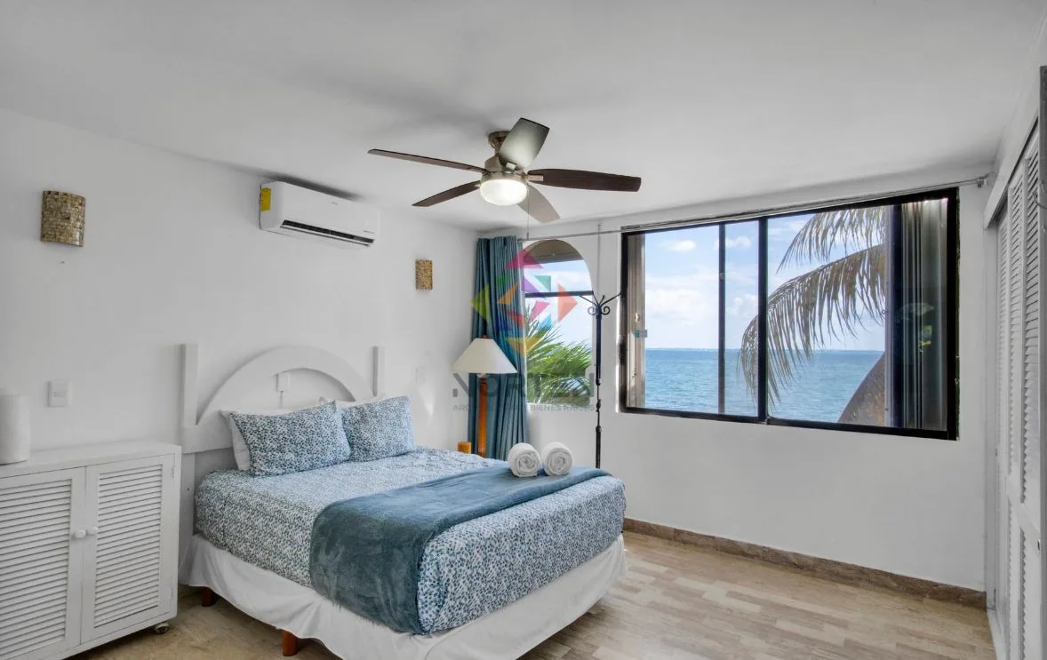 This beautiful apartment is located along the tourist–residential corridor of Puerto Juárez–Punta Sam, within an oceanfront condominium. The property offers the white sands of the Caribbean and spectacular views of the sunrise, Isla Mujeres, and the Cancún Hotel Zone.