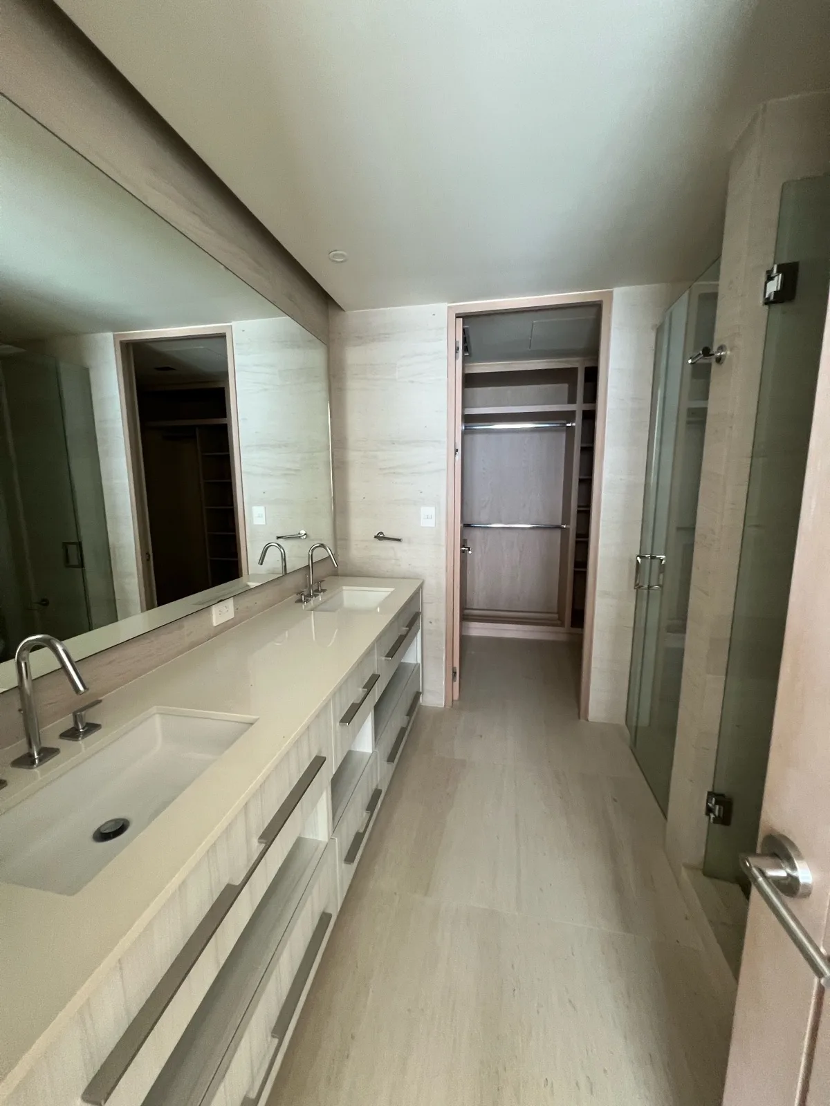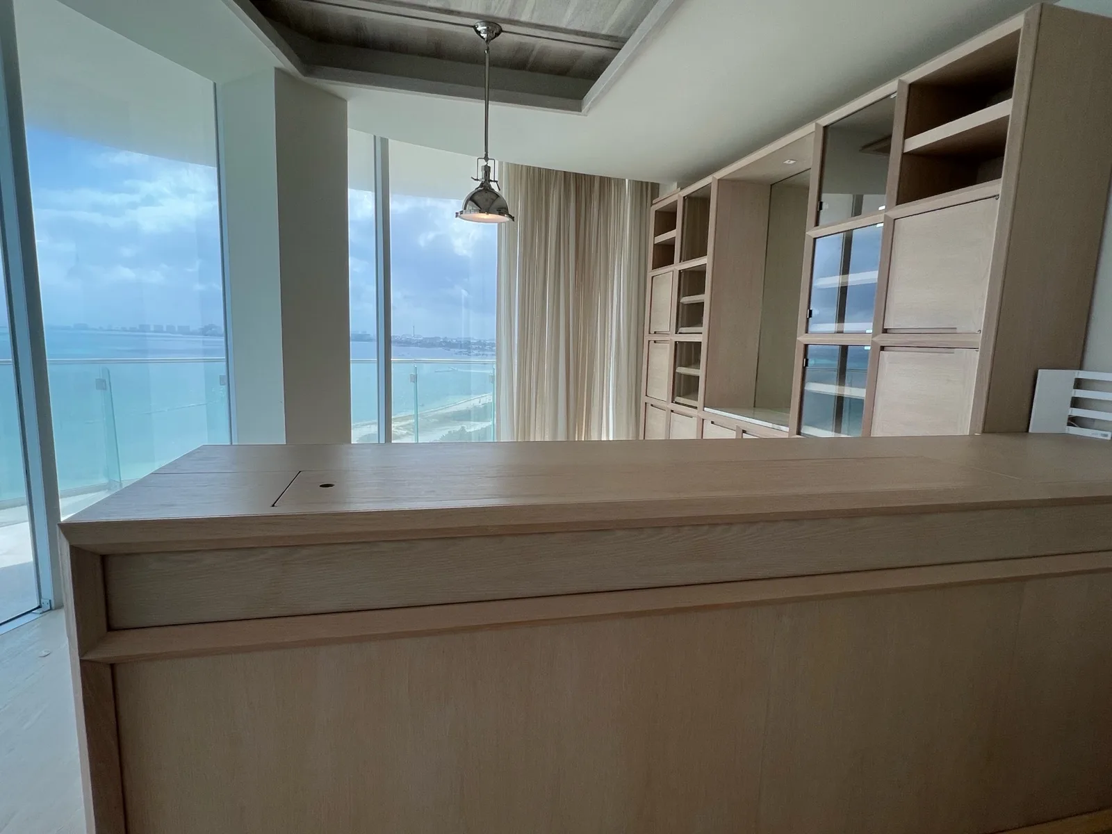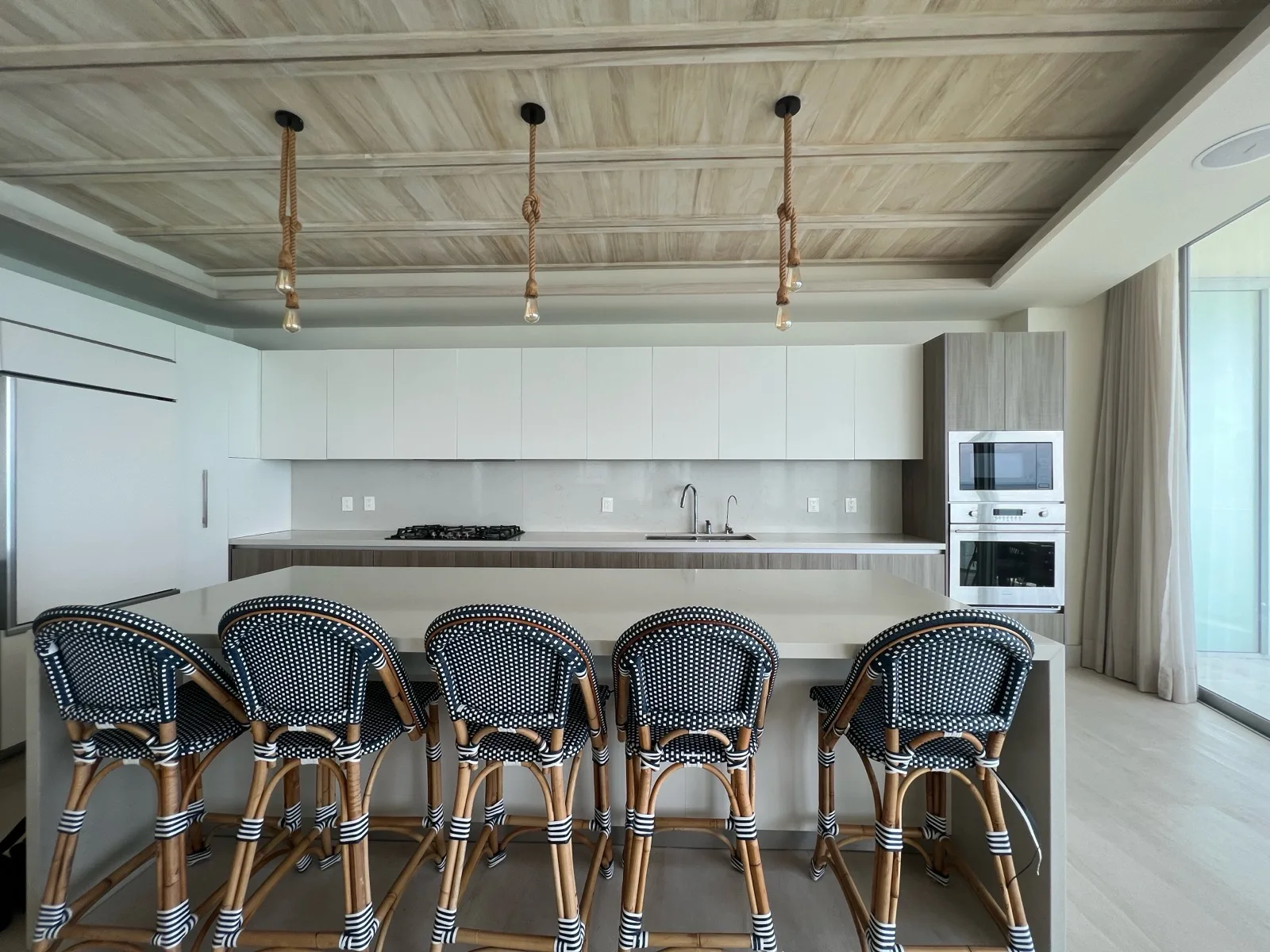 This spectacular high-floor residence offers 360-degree views of the Caribbean Sea. The property features direct beach access and luxury amenities within the development.