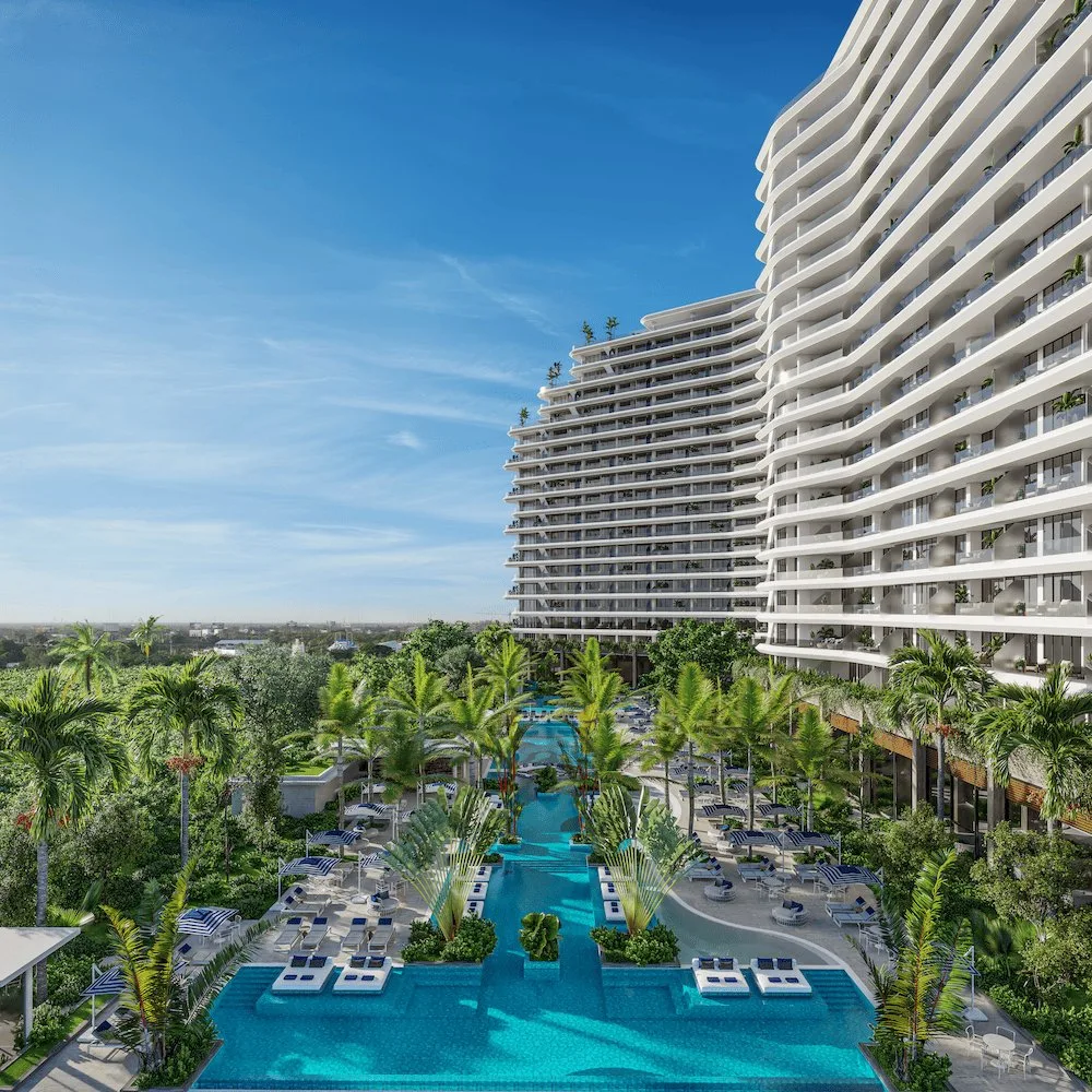 The development offers over fifty world-class amenities. These include a private beach club with included transportation, rooftop infinity pools, sky bars, and lounge areas. Additional facilities consist of a full-service spa, a gym, a yoga studio, and a Zen garden.