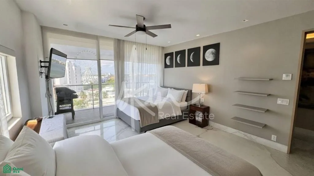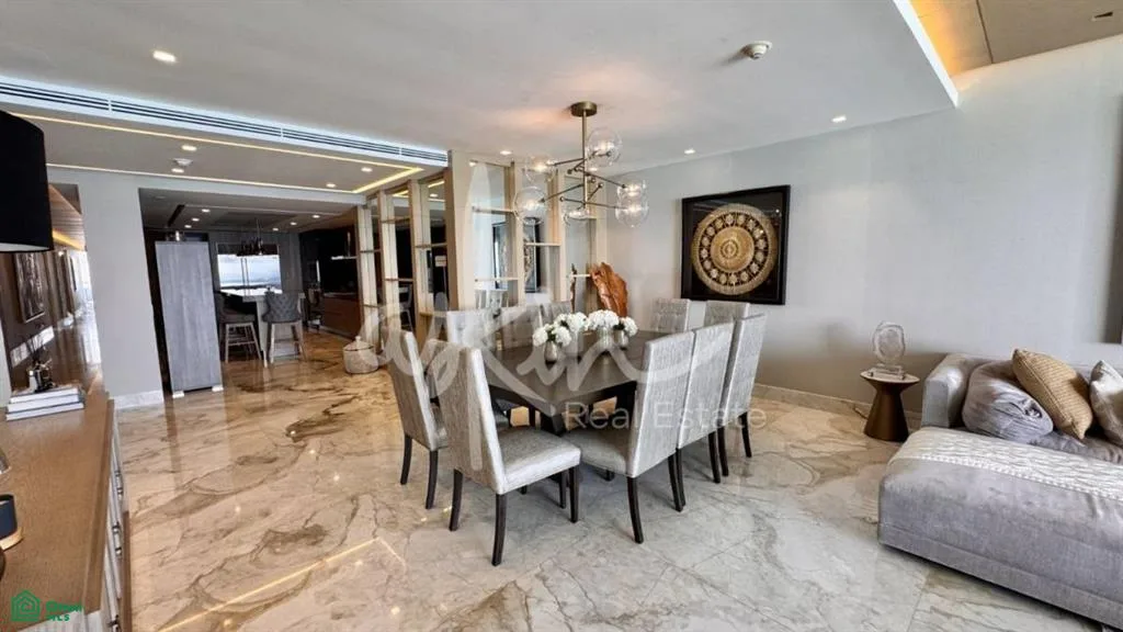 Situated on the 5th floor, this remodeled corner residence spans 402. 81 square meters. It features over 5 bedrooms, 5. 5 bathrooms, and a TV room. The residence provides panoramic ocean and lagoon views along with direct beach access.