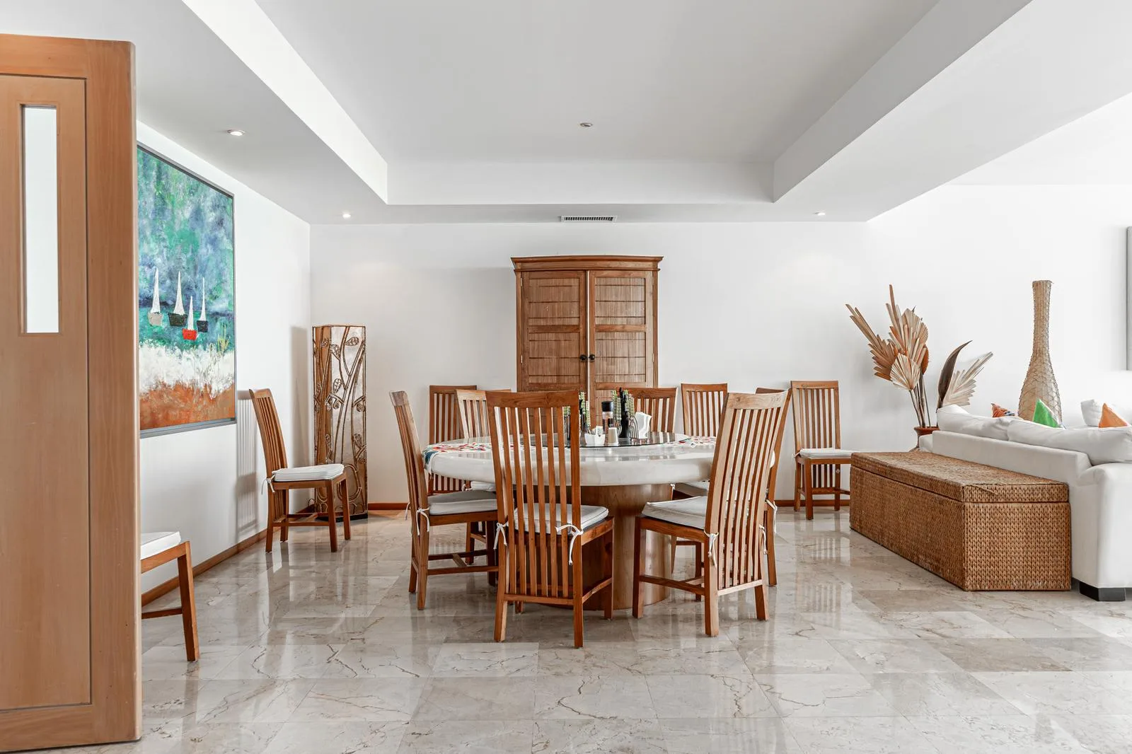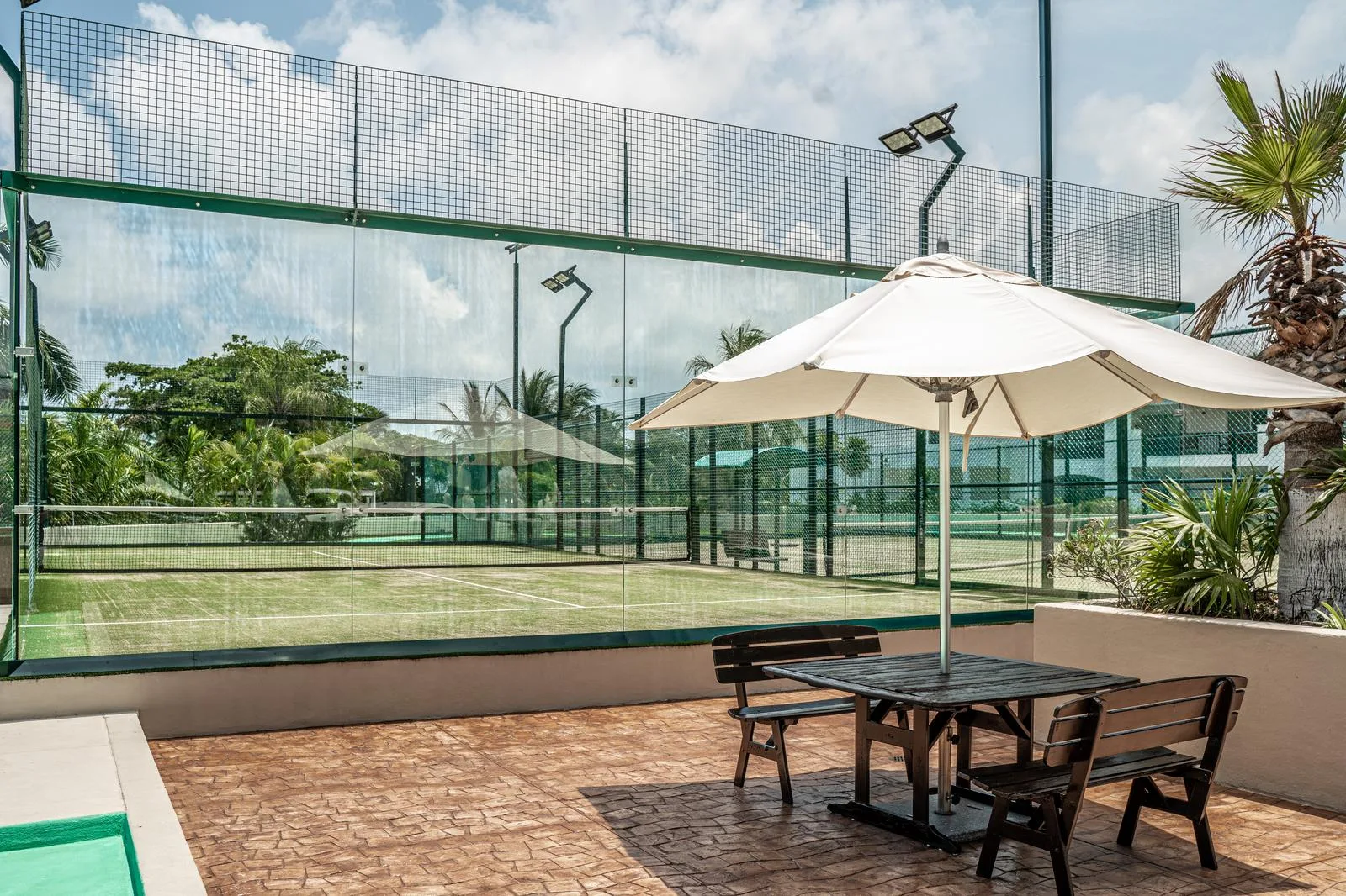 The residence offers extensive amenities, including swimming pools, a spa, a fitness center, tennis and paddle courts, and a beach snack-bar. The property is maintained with 24-hour security.