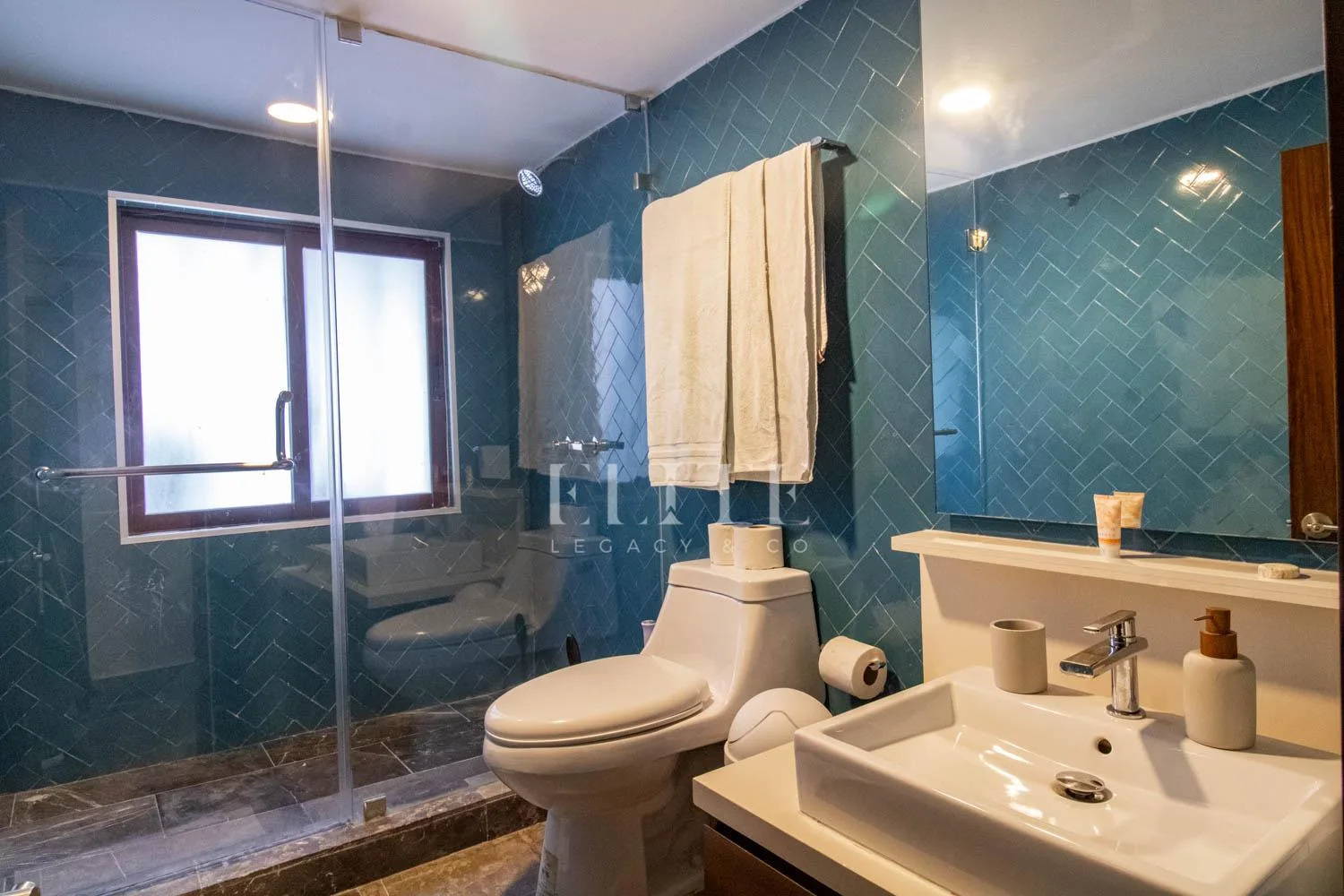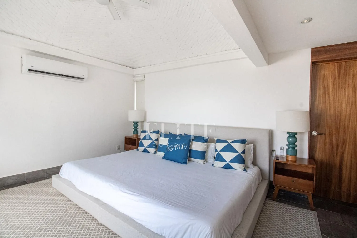 Externally, residents enjoy a swimming pool and a large garden in the common area, shared with only three other homes, with direct access to the beach. The property is located within a private condominium on a closed street, offering 24/7 security.
