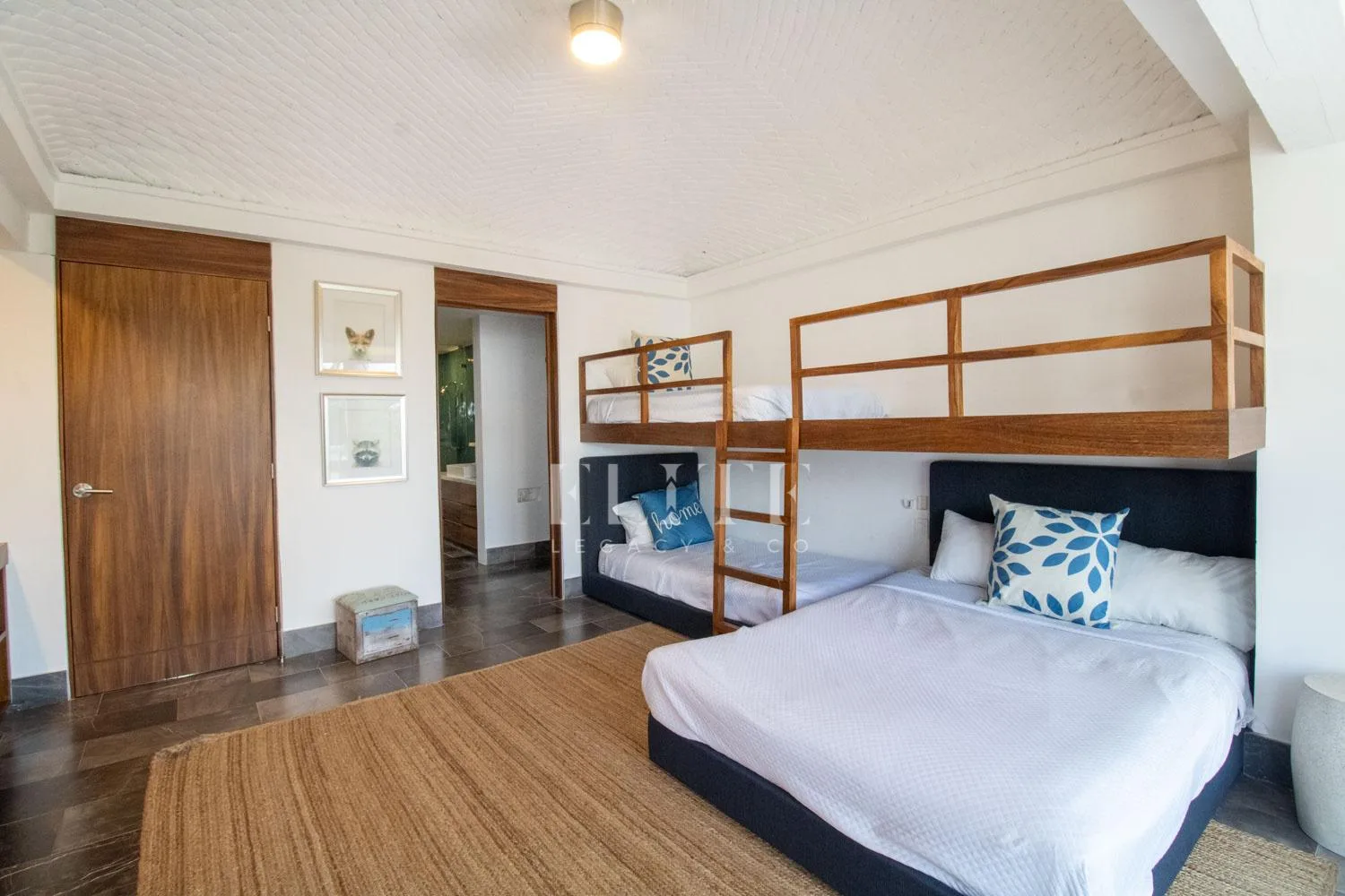 This impressive three-story home is situated directly on the sea in the heart of the Mexican Caribbean, within Cancun's Hotel Zone. Designed to maximize the experience of living alongside the turquoise waters of the Caribbean Sea, the residence offers four bedrooms, each with a full bathroom, three of which feature sea views.