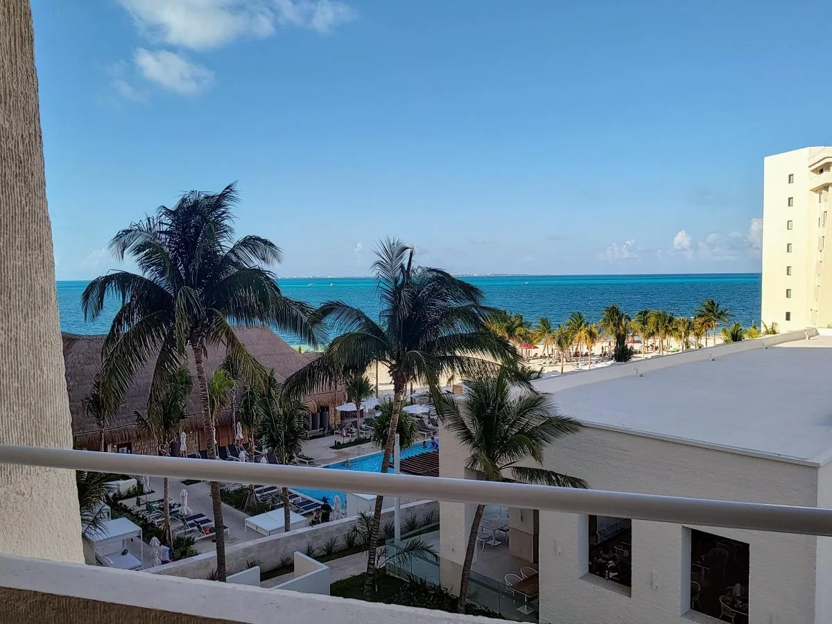 This incredible beachfront apartment is located on the 4th floor of a recently renovated resort in Cancun's Hotel Zone, facing one of the area's most beautiful beaches. It is a corner unit with 132 square meters (approximately 1421 square feet) of constructed space and features an elevator.