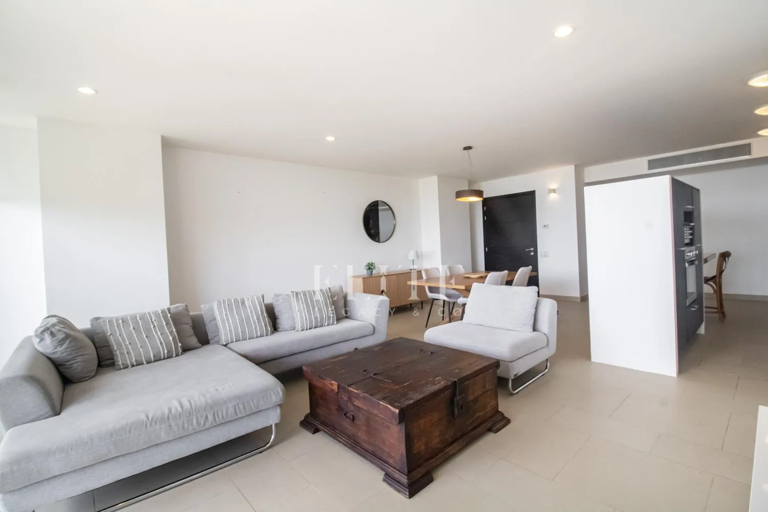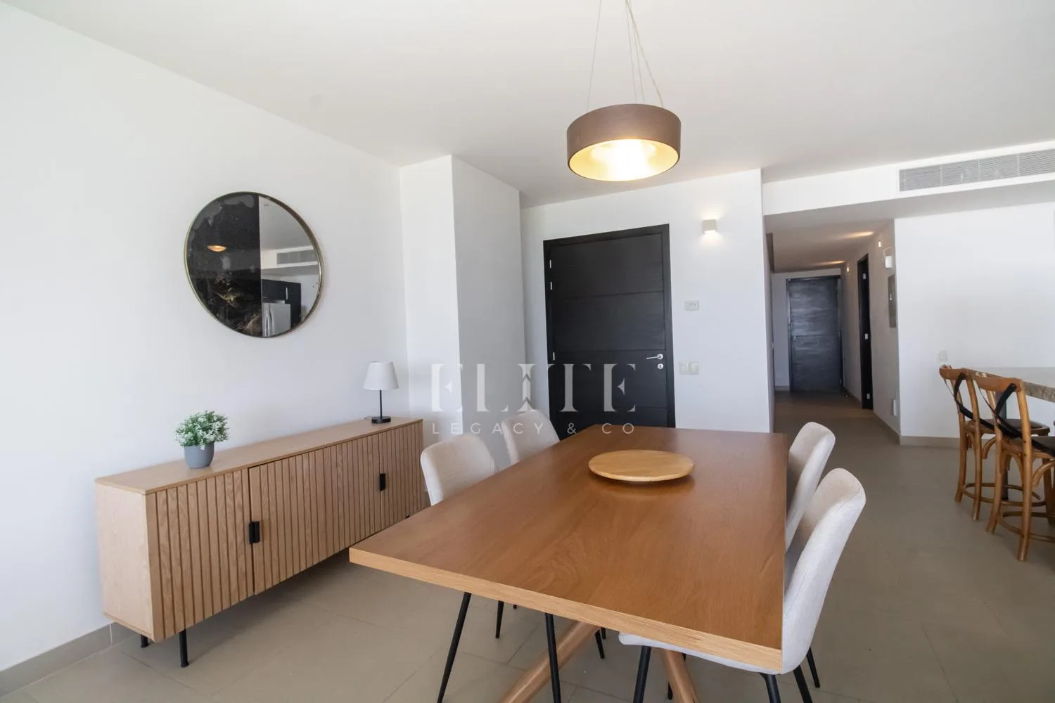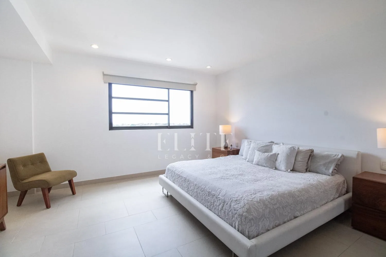 The first level of the property includes a living and dining room, a fully equipped integral kitchen, and a spacious terrace with views of the sea, golf course, and Puerto Cancún. It has one bathroom, a laundry room, a service exit at the back, and a fully equipped primary bedroom.