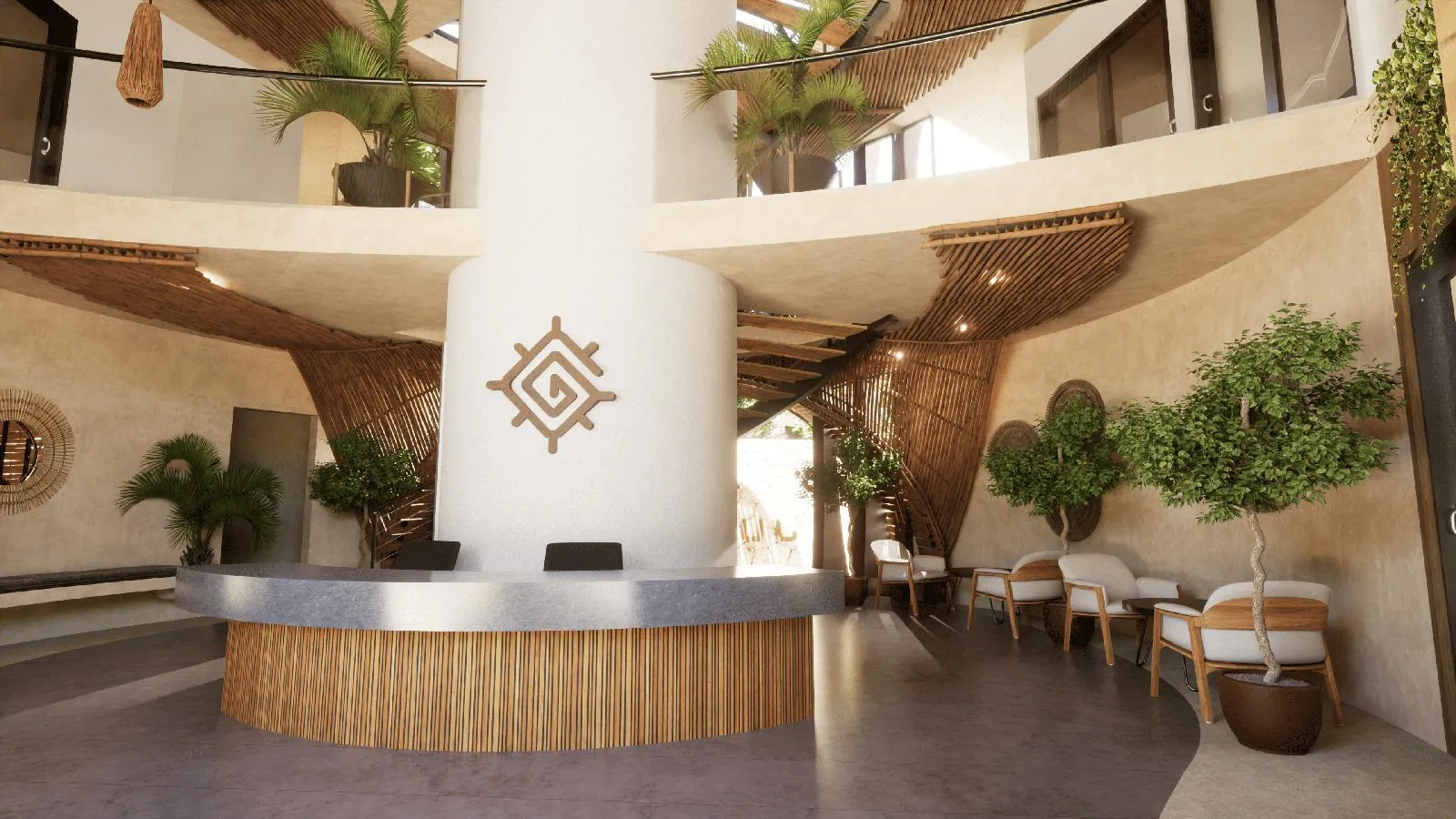 The residence is part of a building with extensive amenities. These include a lobby with reception, a coworking space, parking, and Wi-Fi in common areas. Building features consist of an audio and video cabin, a cinema room, a Temazcal, a spa, a yoga area, and a gym. There are also fire pits, a rooftop area, an elevator, and a commercial area.