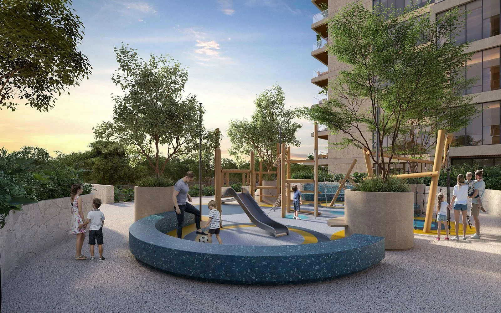 A wide range of amenities are available, including infinity pools, a sunbathing area, and a pool bistro. The property offers children's playgrounds, green areas, walkways, and grills. Additional facilities include an indoor gym, an outdoor gym, a business center, a paddle court, a sky lounge, a security booth, a pet park, and a motor lobby.