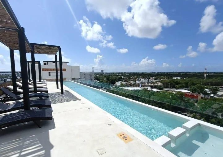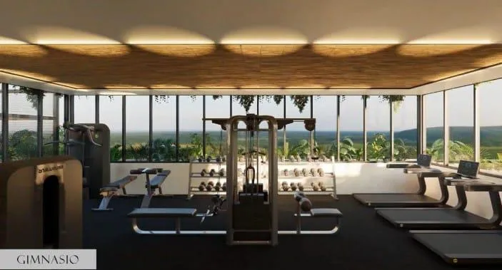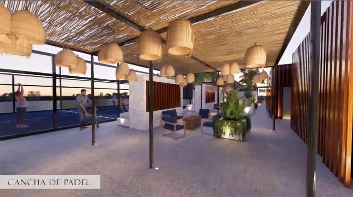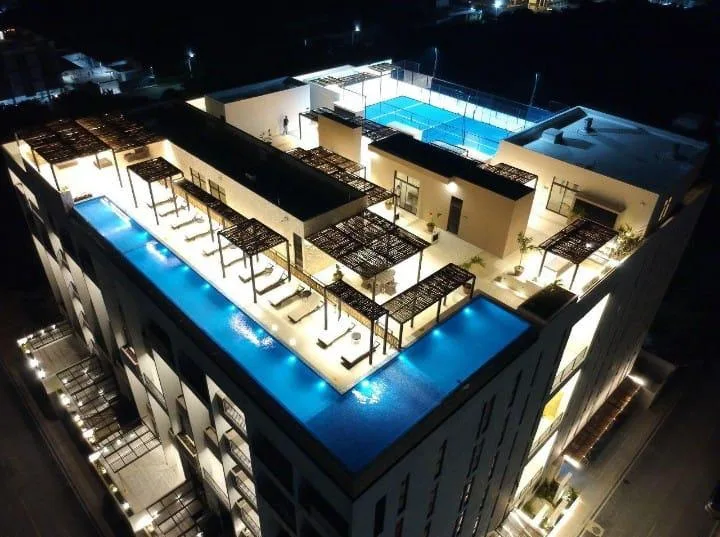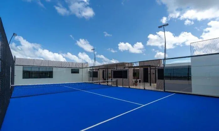 The development offers a swimming pool, a fully equipped gym, a paddle tennis court, a multi-purpose room, a coworking area, a children's playroom, covered parking, a security booth, and a private walkway.