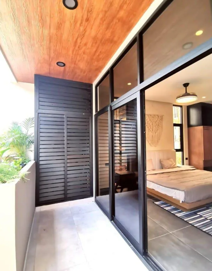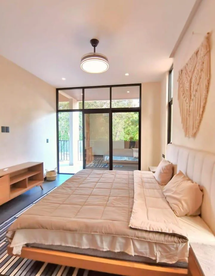 The property offers two bedrooms, each with a full bathroom, ensuring privacy and comfort. The primary bedroom is a true refuge, including a walk-in closet, direct access to a private terrace, and a planter box that adds freshness, natural light, and a harmonious connection with the surroundings.