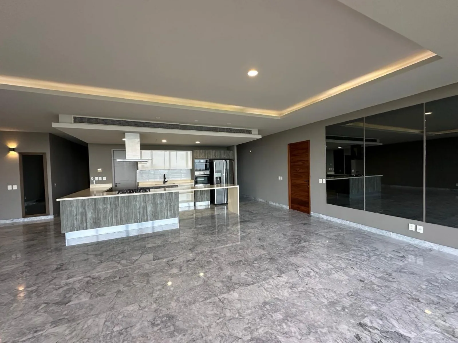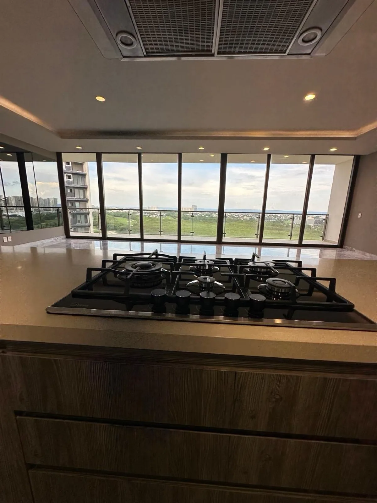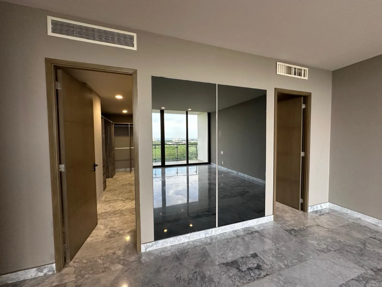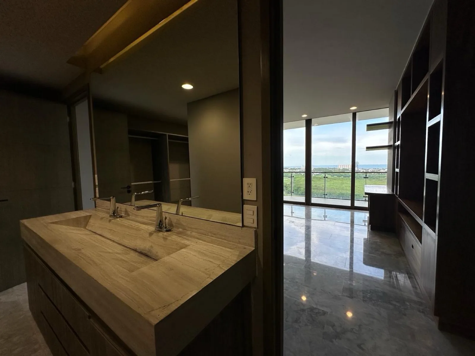 This apartment for sale is located in Puerto Cancún. It features three spacious bedrooms, plus an additional TV room that can function as a fourth bedroom. Each bedroom includes a full bathroom, and the primary suite has a walk-in closet.