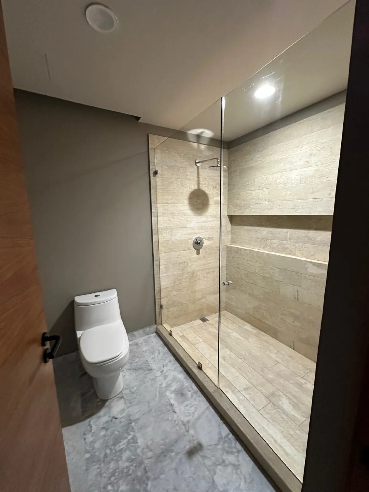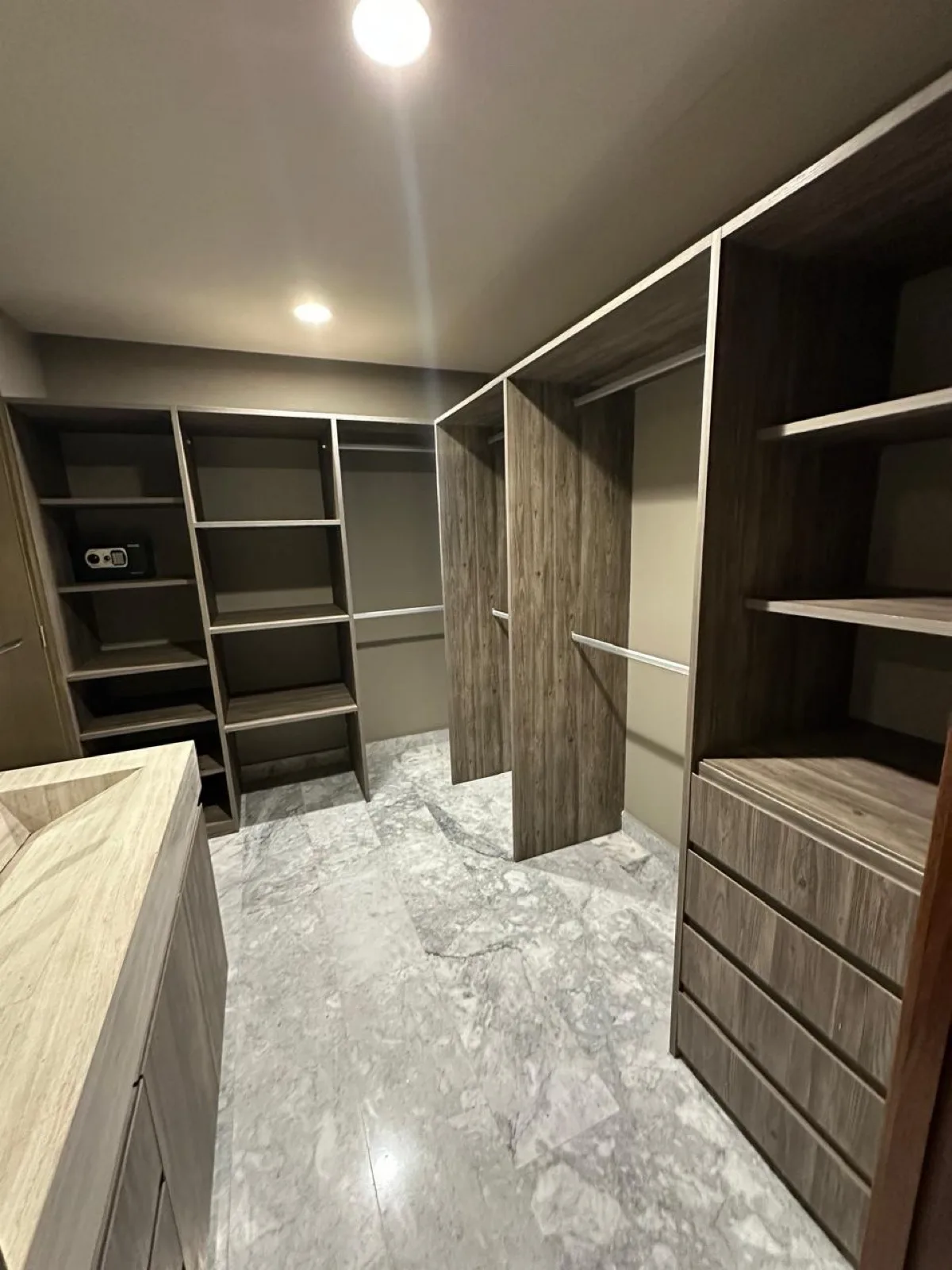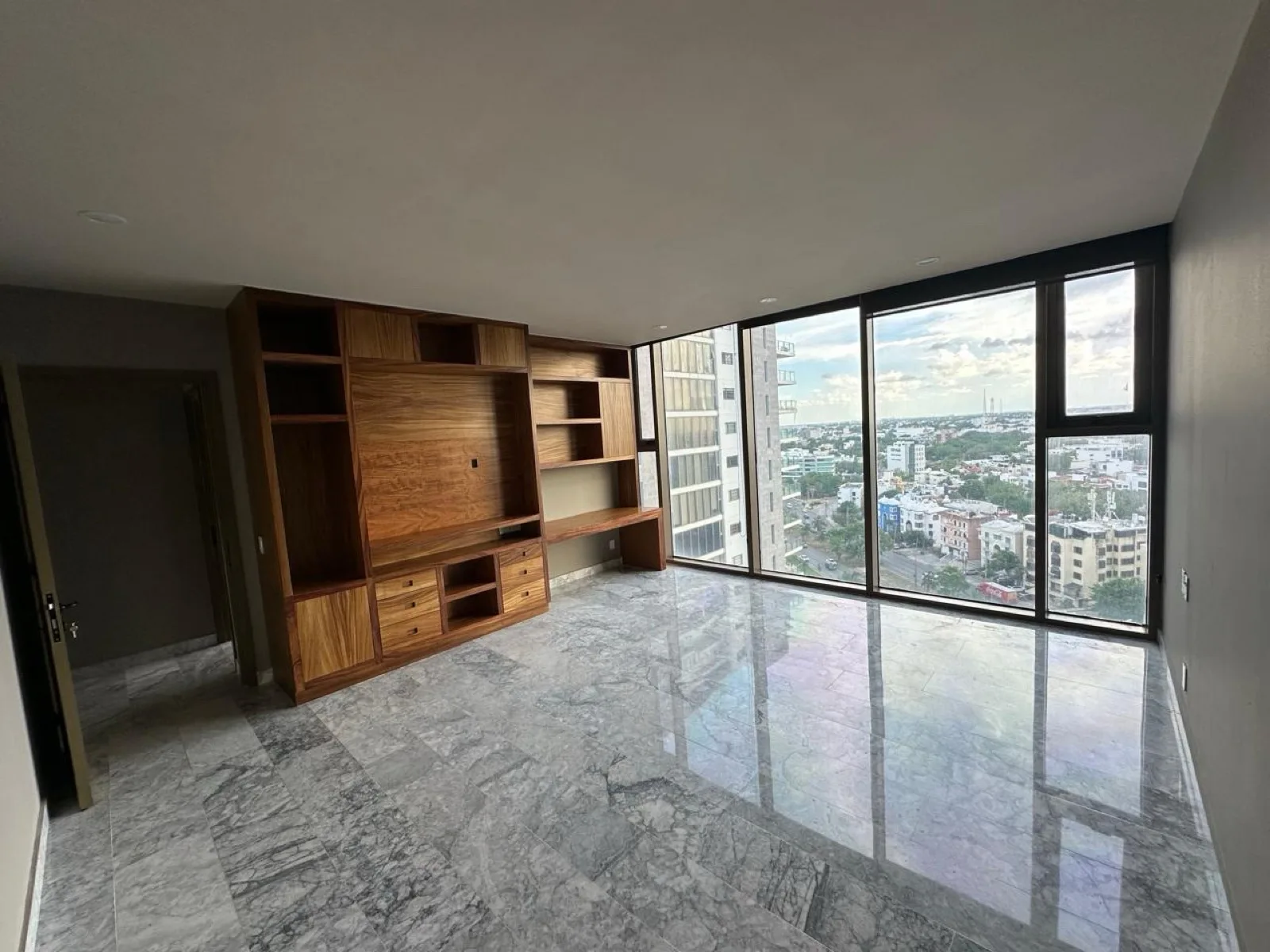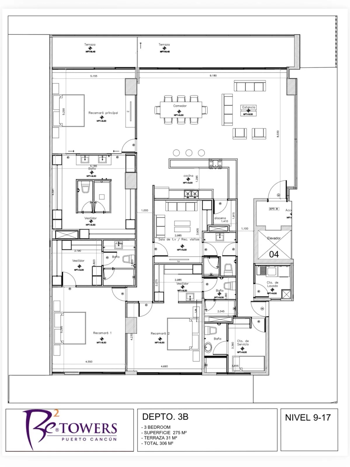 This apartment for sale is located in Puerto Cancún. It features three spacious bedrooms, plus an additional TV room that can function as a fourth bedroom. Each bedroom includes a full bathroom, and the primary suite has a walk-in closet.