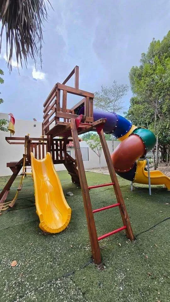 This apartment is situated within one of the most comprehensive residential developments in Cancún's Polígono Sur area. The unit offers three bedrooms and two full bathrooms. It features an integrated, equipped kitchen, a separate service area, and spacious living and dining rooms. The property includes two parking spaces and has a certified construction area of 80. 91 square meters. It comes with two air conditioning units, closets, tempered glass windows, and a stationary gas tank.