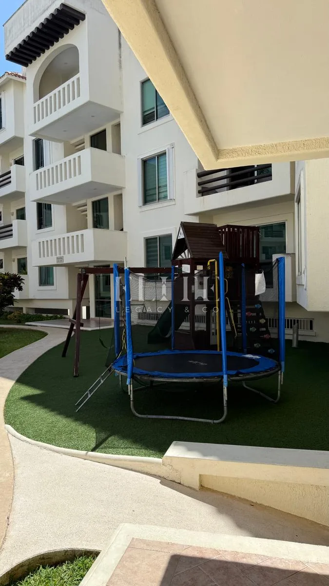 Building amenities include two recreational pools, one semi-olympic pool, a children's play area, a palapa for events by the pool, grills, game tables for teenagers and adults, a cycle path, a gym, a spa, 24/7 security, and closed-circuit security.