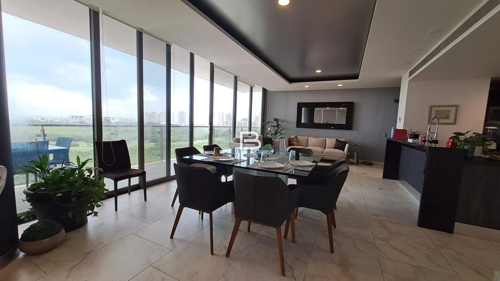 This spectacular apartment offers 213 square meters of spacious living area with a functional layout. It includes three bedrooms and three full bathrooms. The primary bedroom features a walk-in closet, a balcony, and a private bathroom. The secondary bedroom includes a walk-in closet and a full bathroom. The third room, suitable as a study or guest room, also includes a full bathroom. The residence integrates a fully equipped kitchen, a laundry room, a generous living and dining area, and an exterior terrace with impressive views of the Caribbean Sea and the golf course. The unit is located in Tower C, one of the towers within the complex noted for its favorable orientation and privacy.