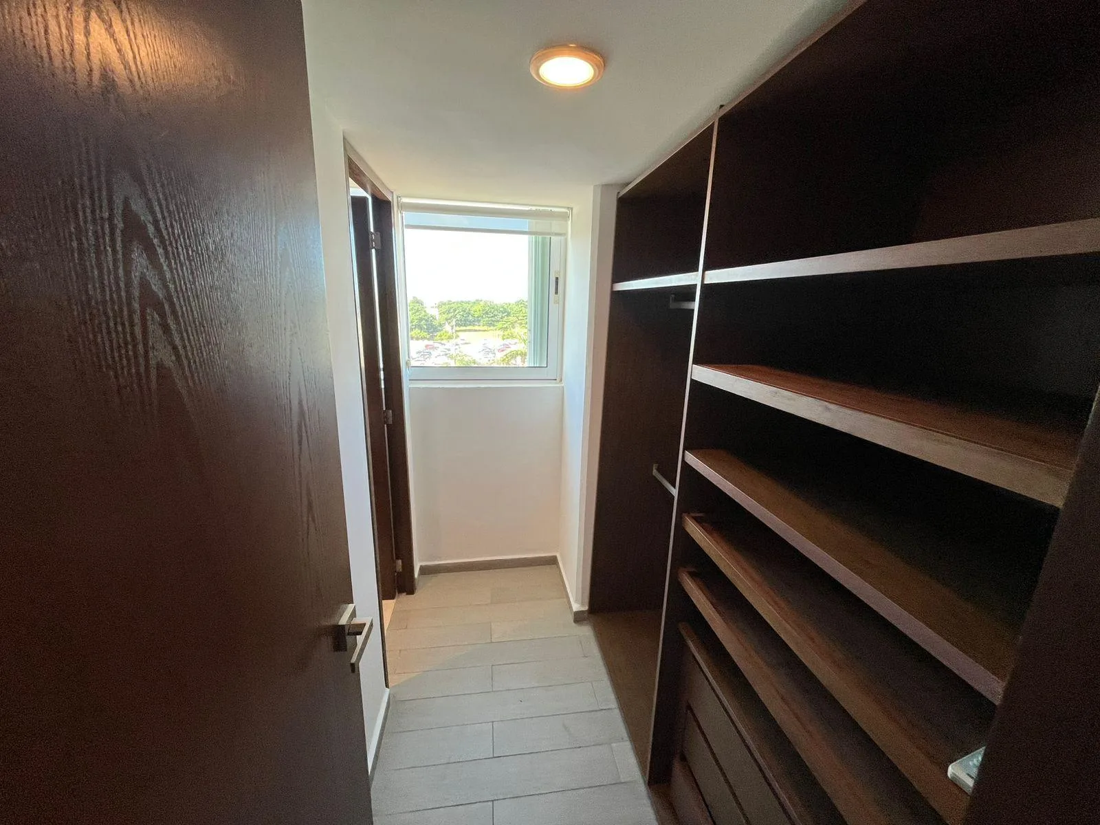 The apartment features two terraces providing panoramic views. It includes two dedicated parking spaces and is equipped with hurricane-resistant curtains and installed air conditioning units.