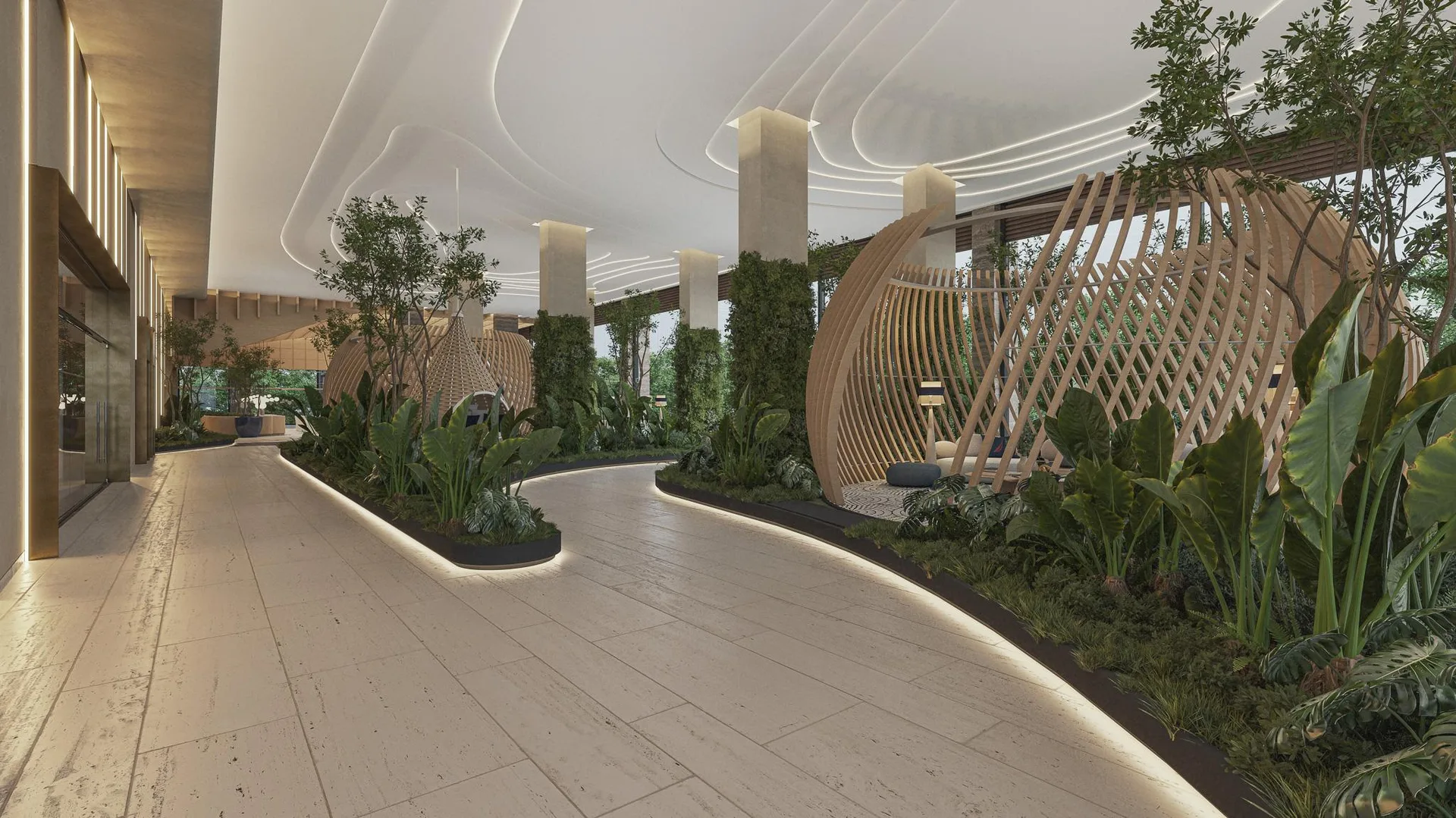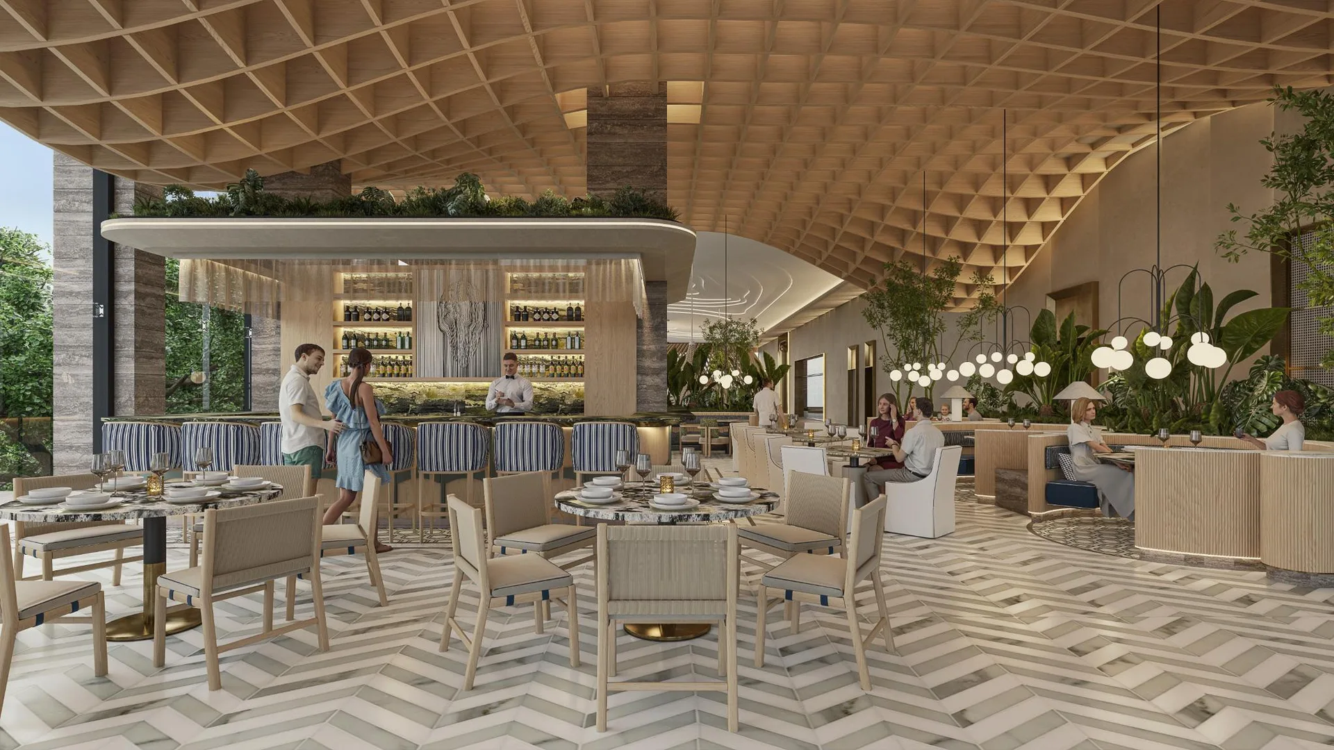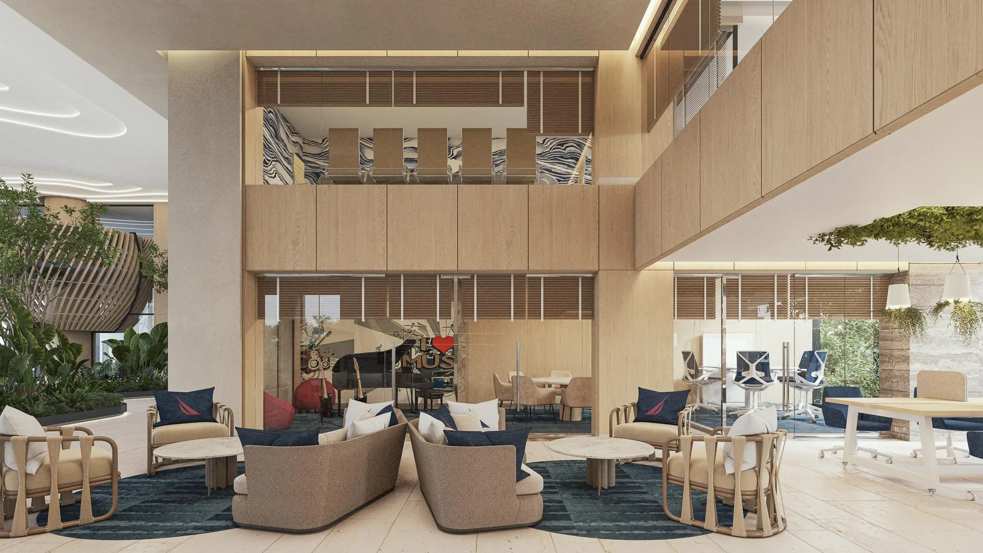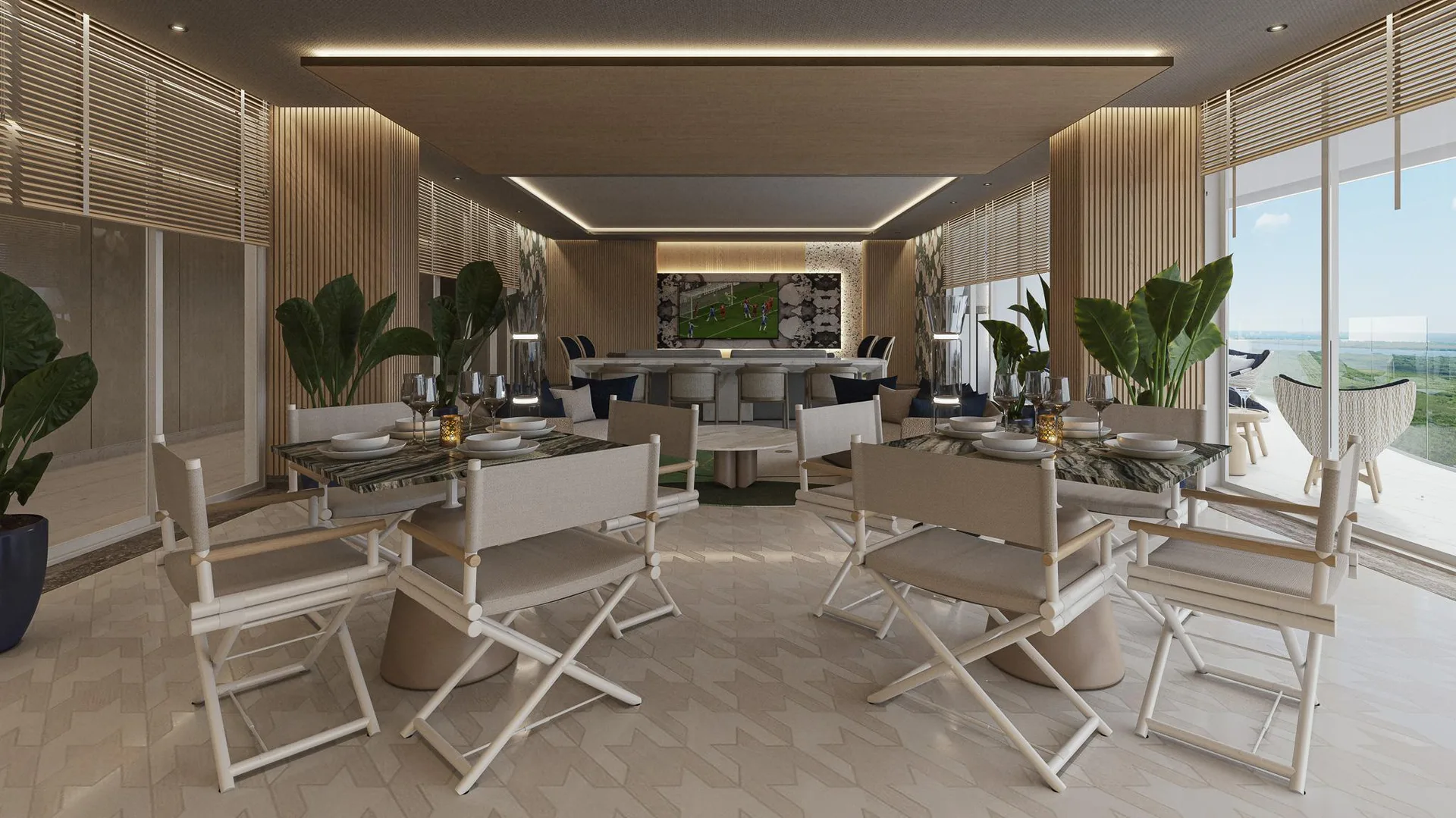 Beyond the residence unfolds a universe of over fifty amenities that redefine community living. These include multiple swimming pools, featuring a rooftop infinity pool with a bar, an exclusive spa, and a fitness center. For entertainment, there is a private cinema, tennis and paddle courts, a game room, and specialized areas for children and teenagers. The experience culminates with privileged access to an exclusive Beach Club on Isla Blanca, with private transportation included.