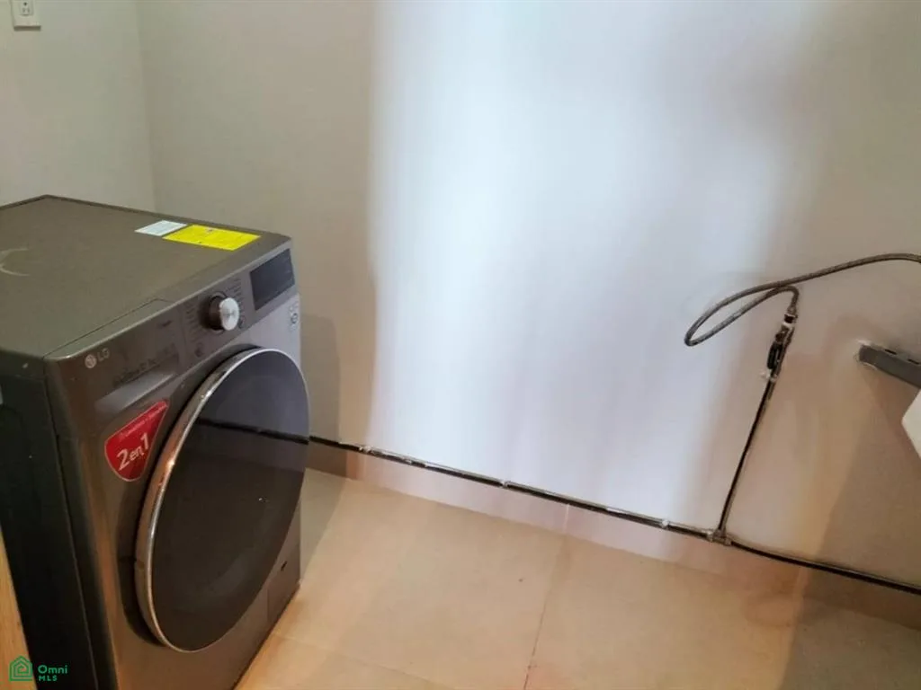 This furnished residence offers a comfortable layout with a living room, dining room, two bedrooms, and two full bathrooms. The fully equipped kitchen includes a stove and cupboard, and there is a covered laundry area with a washer and dryer. The unit comes with three air conditioners, curtains, lighting, and closets in the bedrooms. One registered parking space is included.