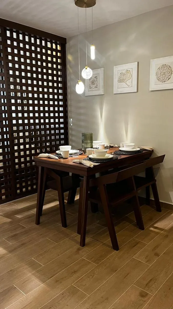 The boutique development is distinguished by its tranquil and sophisticated atmosphere, inspired by Asian architecture. Common areas and amenities include a central pool with a water feature, a grill area, loungers and a relaxation zone, and 24/7 security with surveillance cameras. The property offers a natural and harmonious environment with controlled access.