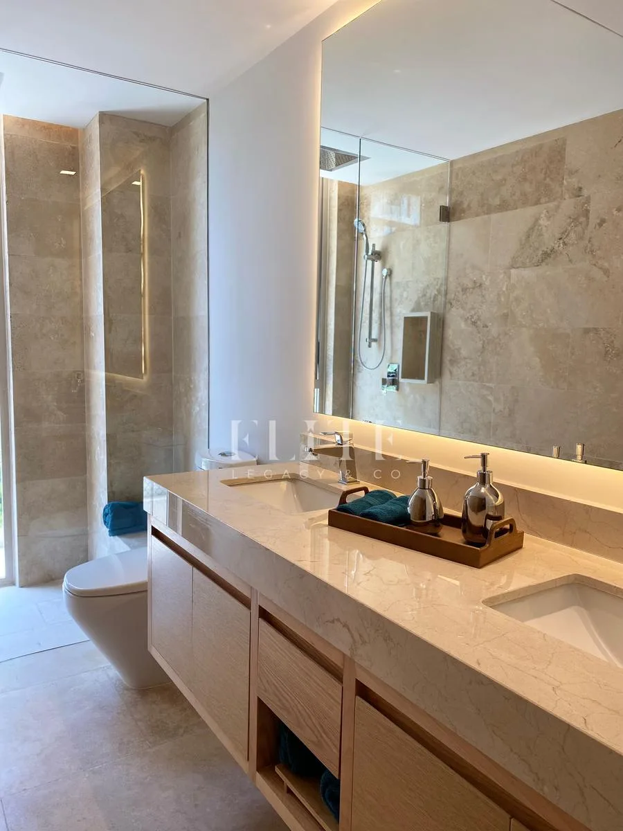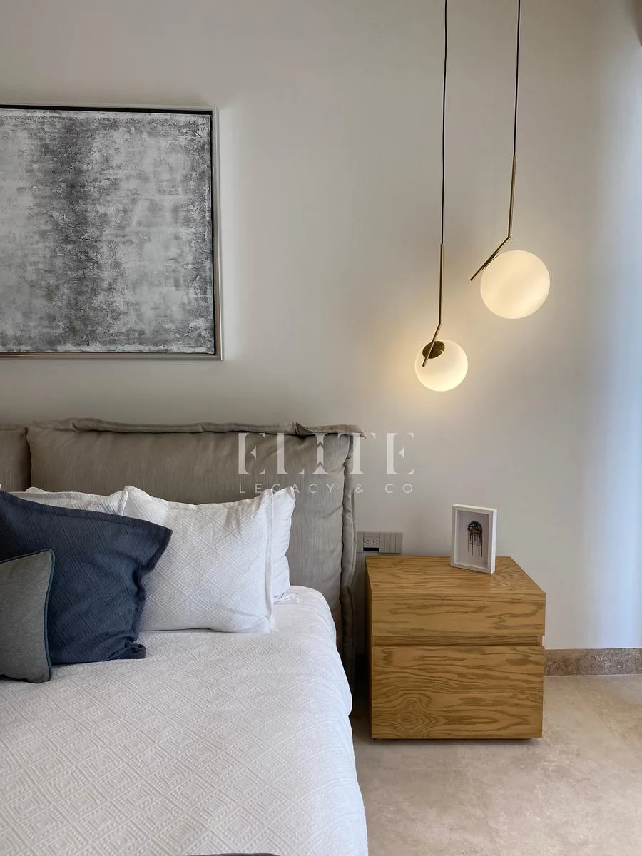 The building's amenities are exceptional, featuring an elegant lobby, a fully equipped gym, a swimming pool, a business center, an entertainment room, a marina, a beach club, and 24-hour security. The building is equipped with an elevator and provides two assigned parking spaces per apartment.