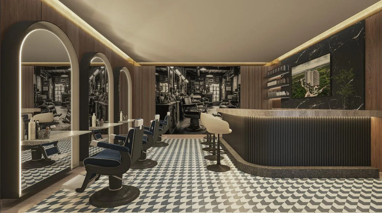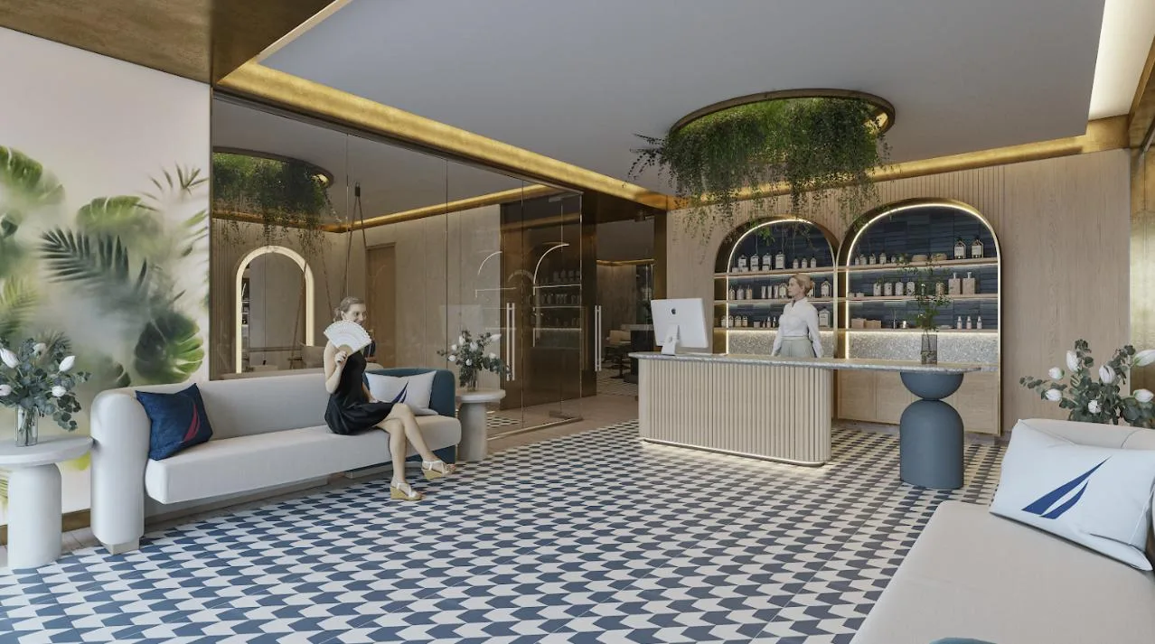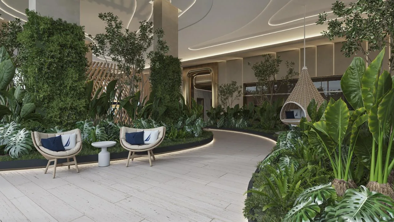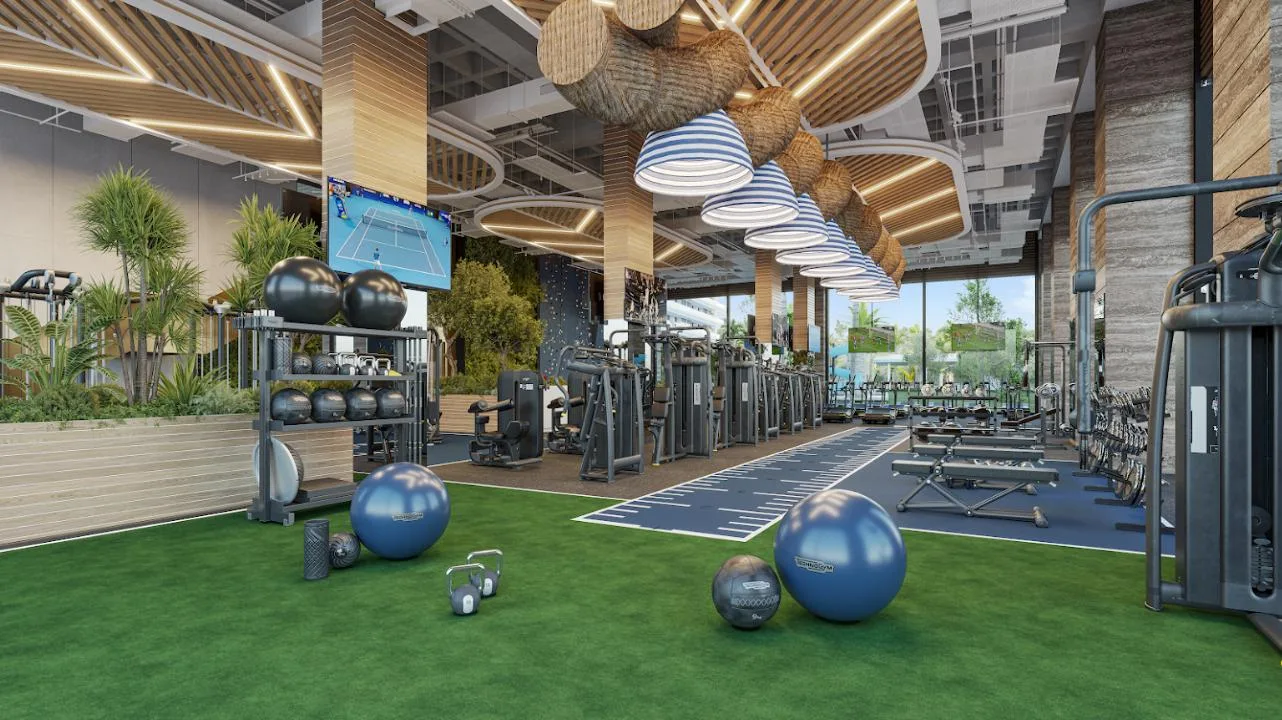 The apartment is part of a complex with two 20-level towers. The development provides over 50 amenities, including a private beach club, a wellness center and spa, and a sports area with paddle, tennis, and mini golf courts. Family and children's pools feature a Splash Zone and Aqua Slide. Additional amenities include a sports bar, cinema lounge, teens club, co-working spaces, a media room, and music hall. The complex also offers a pet zone, barber shop, kids club, restaurants, a piano bar, roof lounges, a marina deck, and an event hall. A high-security environment is maintained, and the location provides strategic connectivity to schools, shopping centers, and city services.