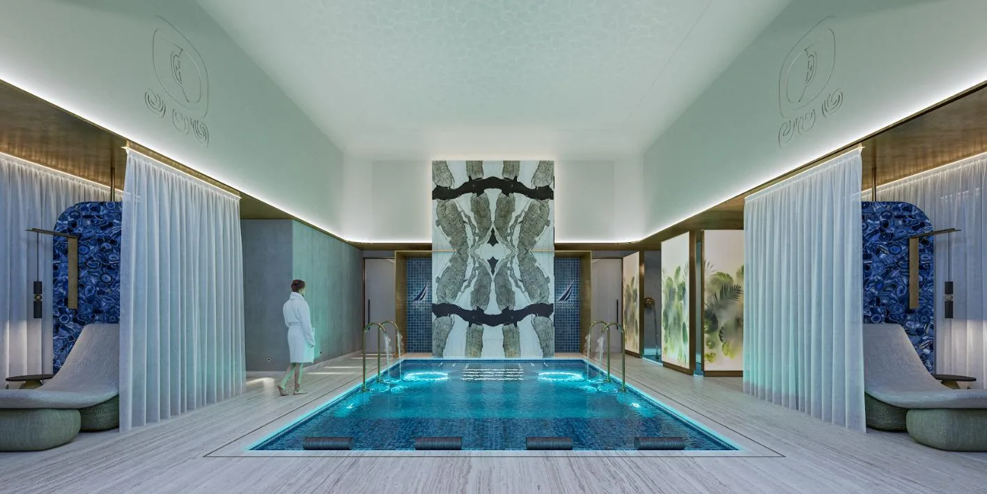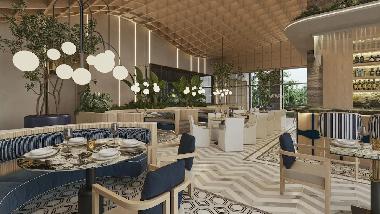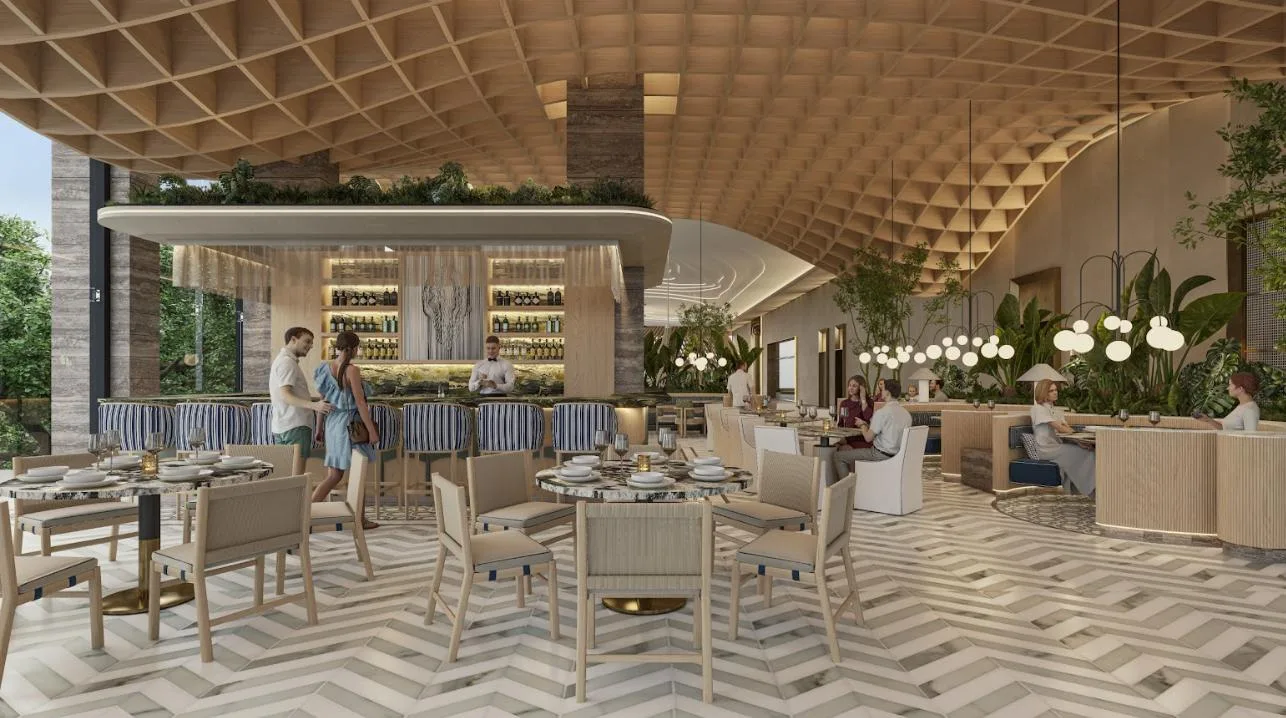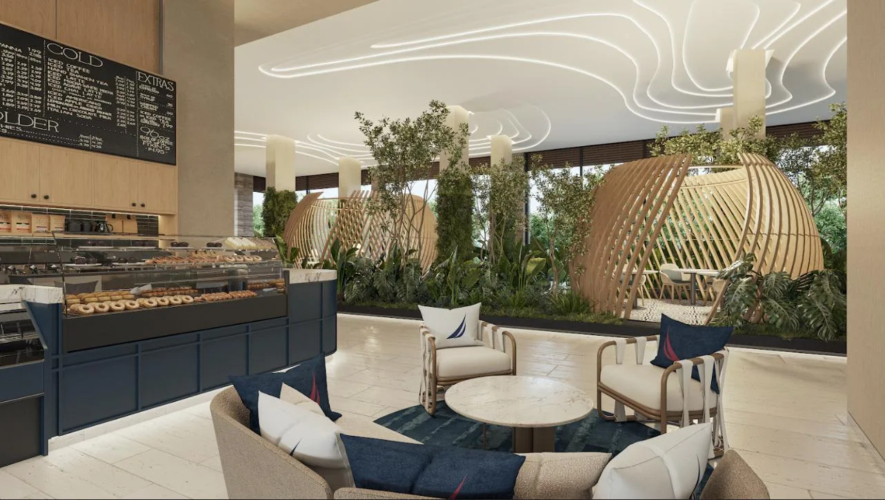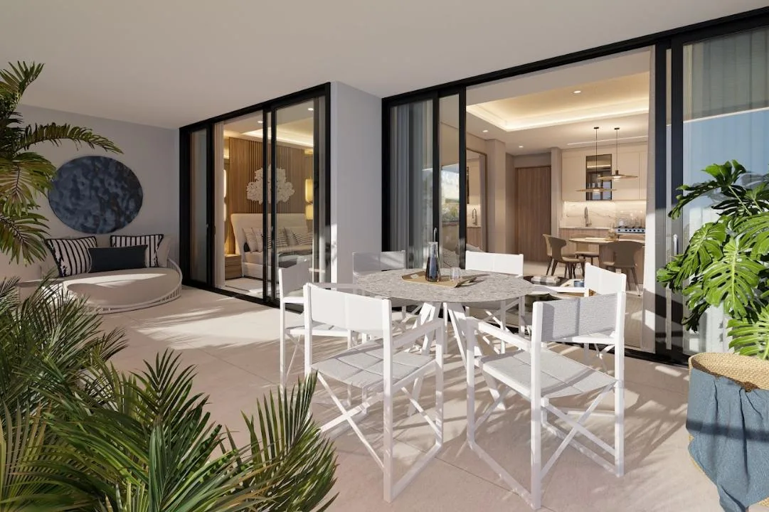 The apartment is part of a complex with two 20-level towers. The development provides over 50 amenities, including a private beach club, a wellness center and spa, and a sports area with paddle, tennis, and mini golf courts. Family and children's pools feature a Splash Zone and Aqua Slide. Additional amenities include a sports bar, cinema lounge, teens club, co-working spaces, a media room, and music hall. The complex also offers a pet zone, barber shop, kids club, restaurants, a piano bar, roof lounges, a marina deck, and an event hall. A high-security environment is maintained, and the location provides strategic connectivity to schools, shopping centers, and city services.