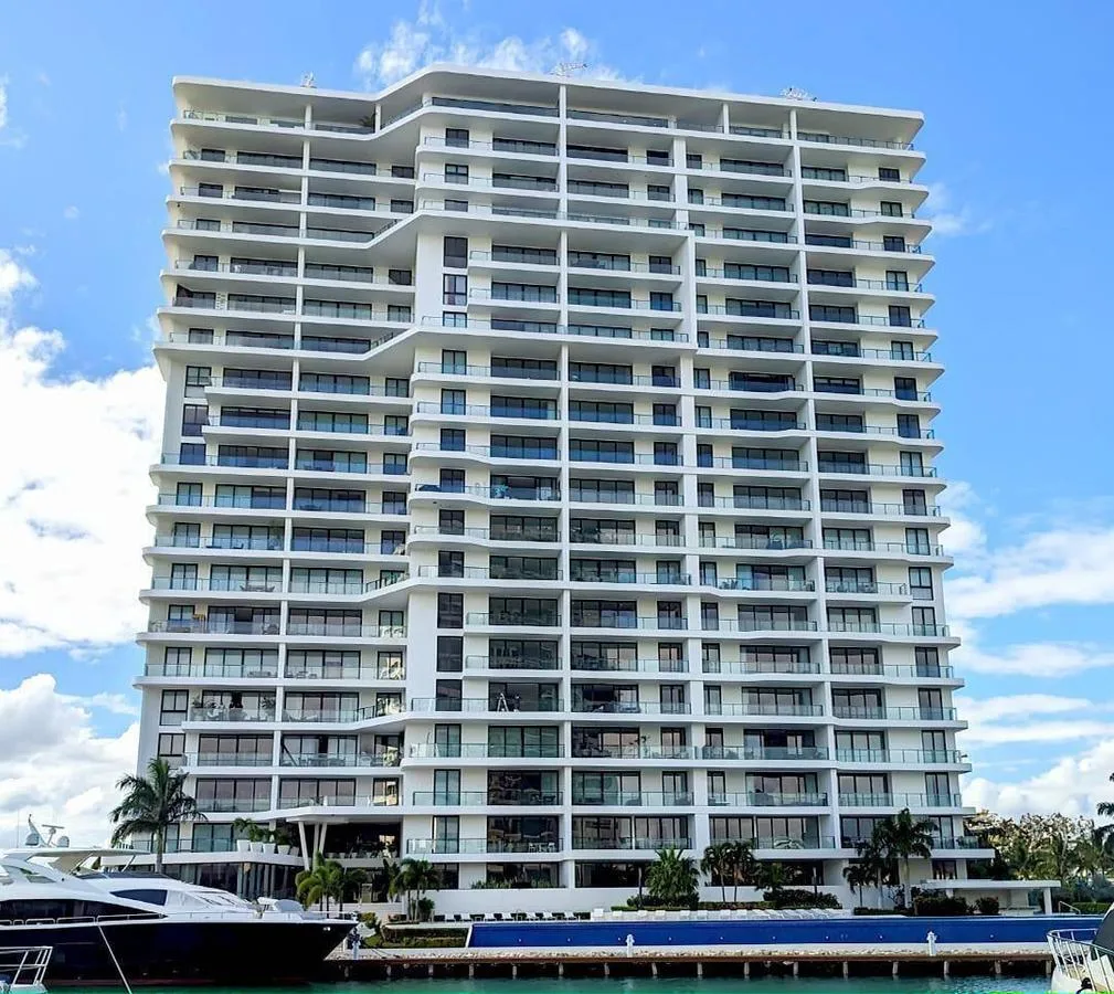 Building amenities encompass an infinity pool with views of the marina, a lounge bar and events salon, a fully equipped gym, a spa and yoga area, a paddle tennis court, a children's play area, and direct access to the marina. The property provides 24-hour security.