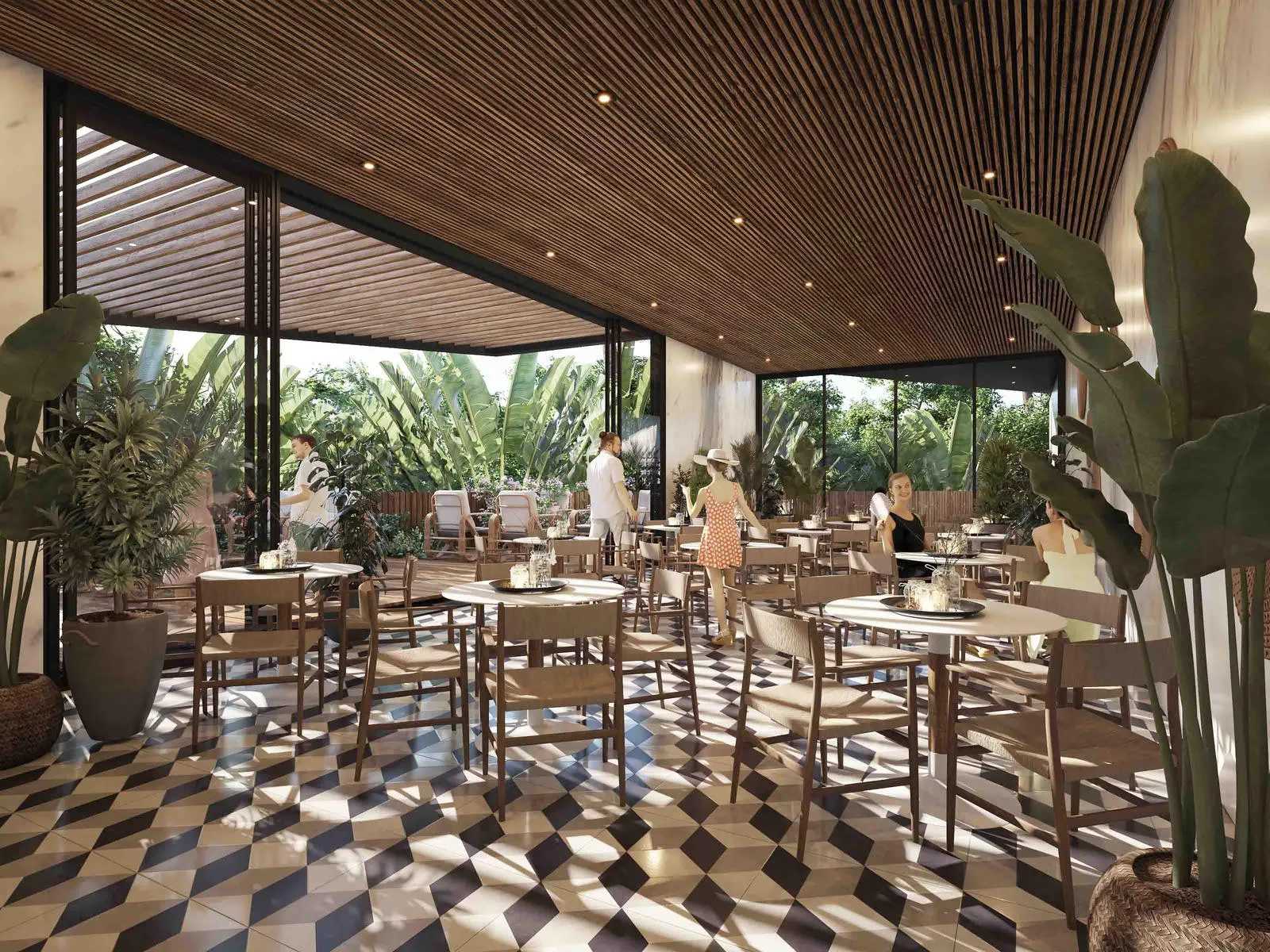 The development is distinguished by its unique and avant-garde architectural proposal. Its spectacular design combines architecture and the environment with excellent quality materials to create a space that rises above the city. Being adjacent to the natural mangrove area of Nichupté guarantees residents unparalleled panoramic views.