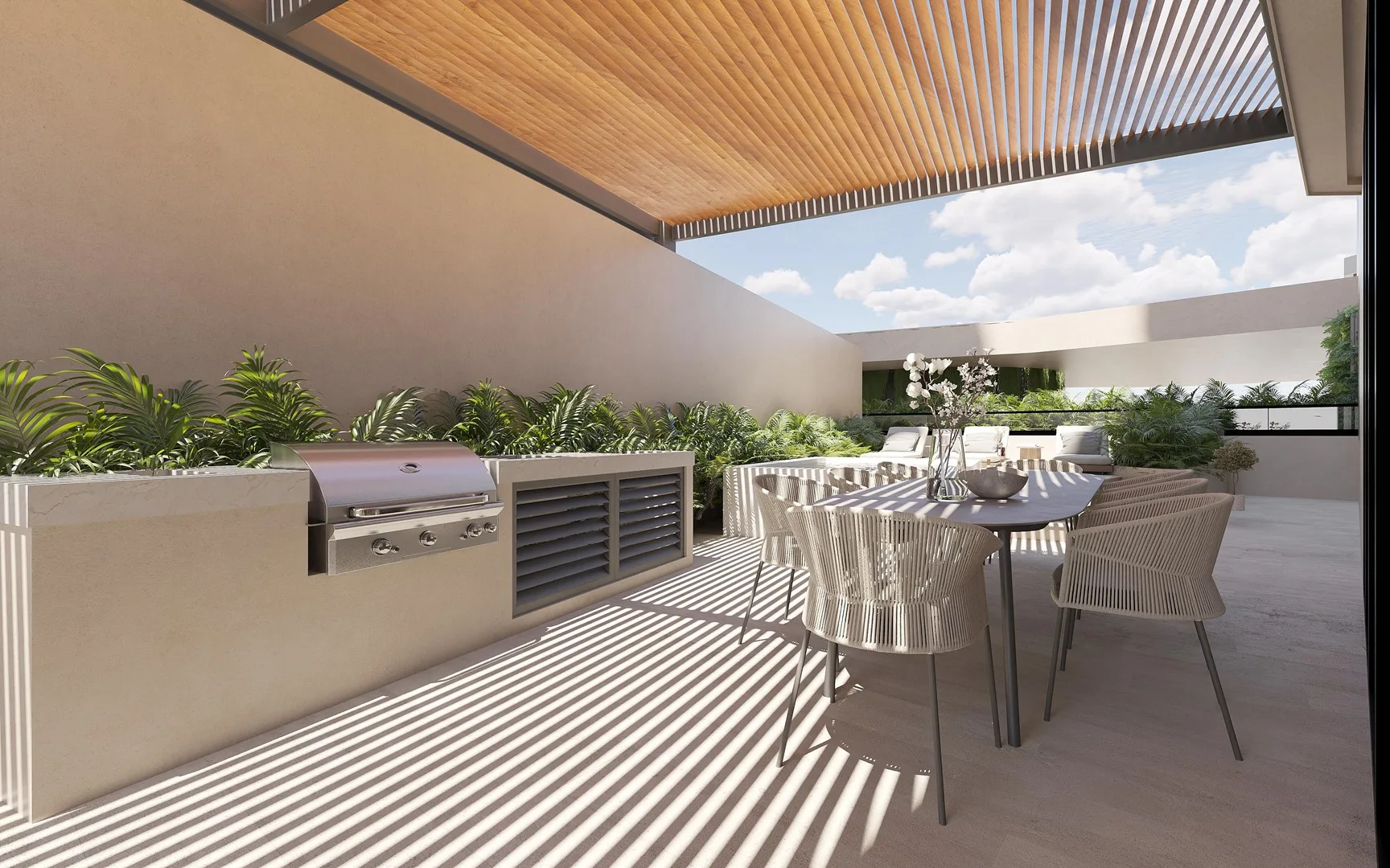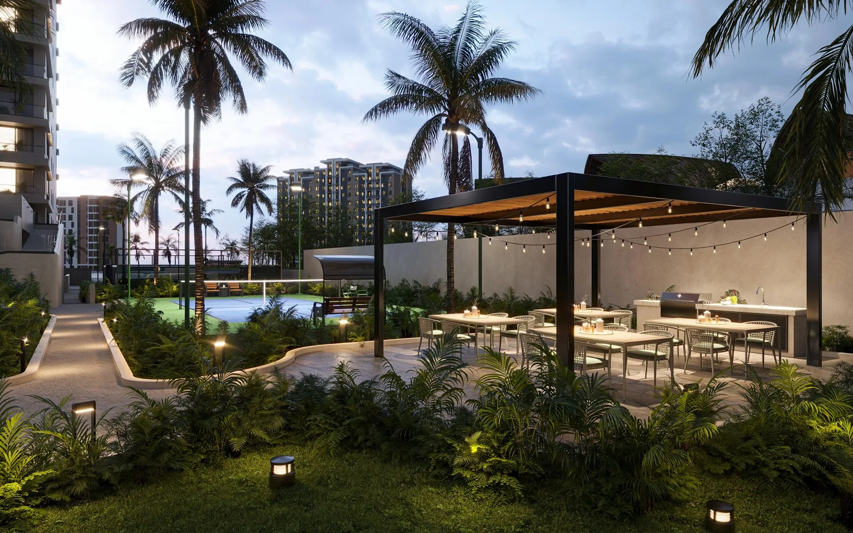The location provides a luxury experience within the Mexican Caribbean environment, where sun, sand, and sea converge. It is situated two minutes from the Puerto Cancún plaza and less than 500 meters from the entrance to Vellmari Grand Living. The nearby plaza features elegant restaurants, family-oriented departments, VIP lounges, and more.