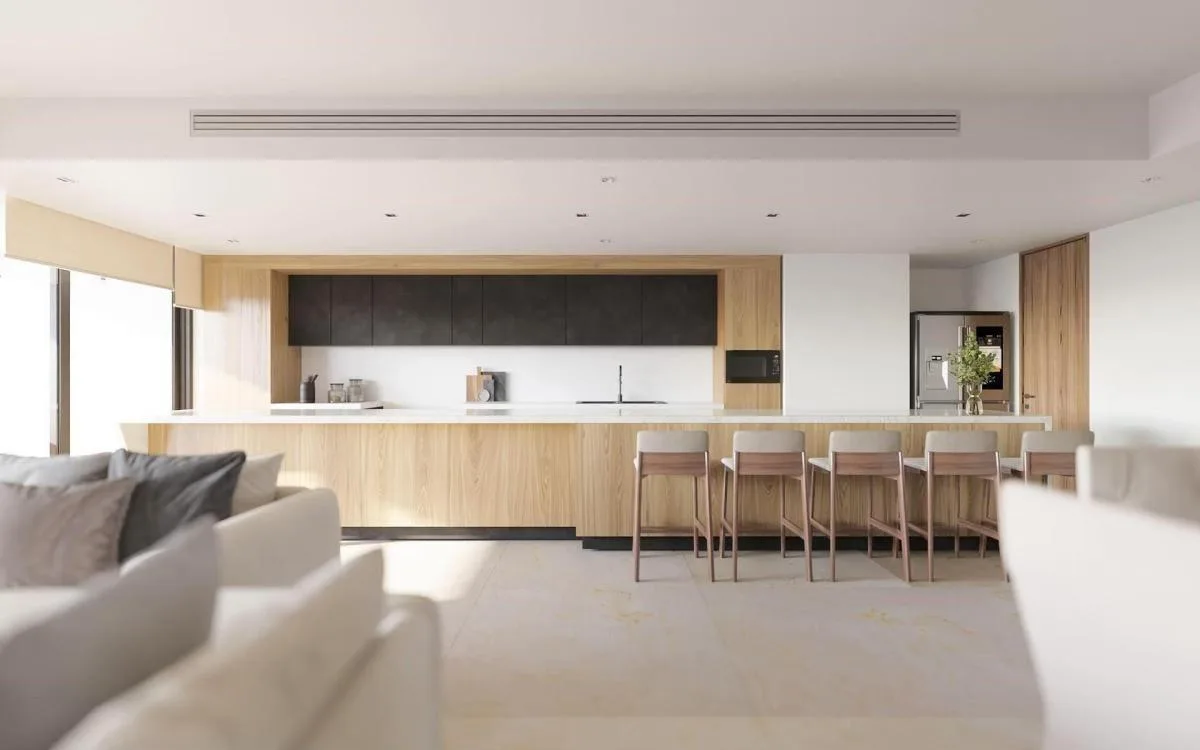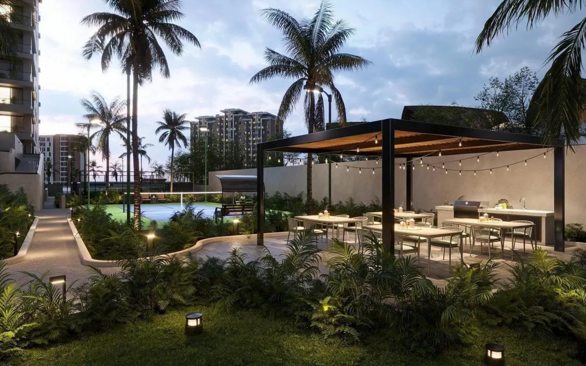 The unit features spacious living areas, high-end finishes, and an intelligent layout designed for comfort and privacy. It includes a well-equipped kitchen and a terrace with views.