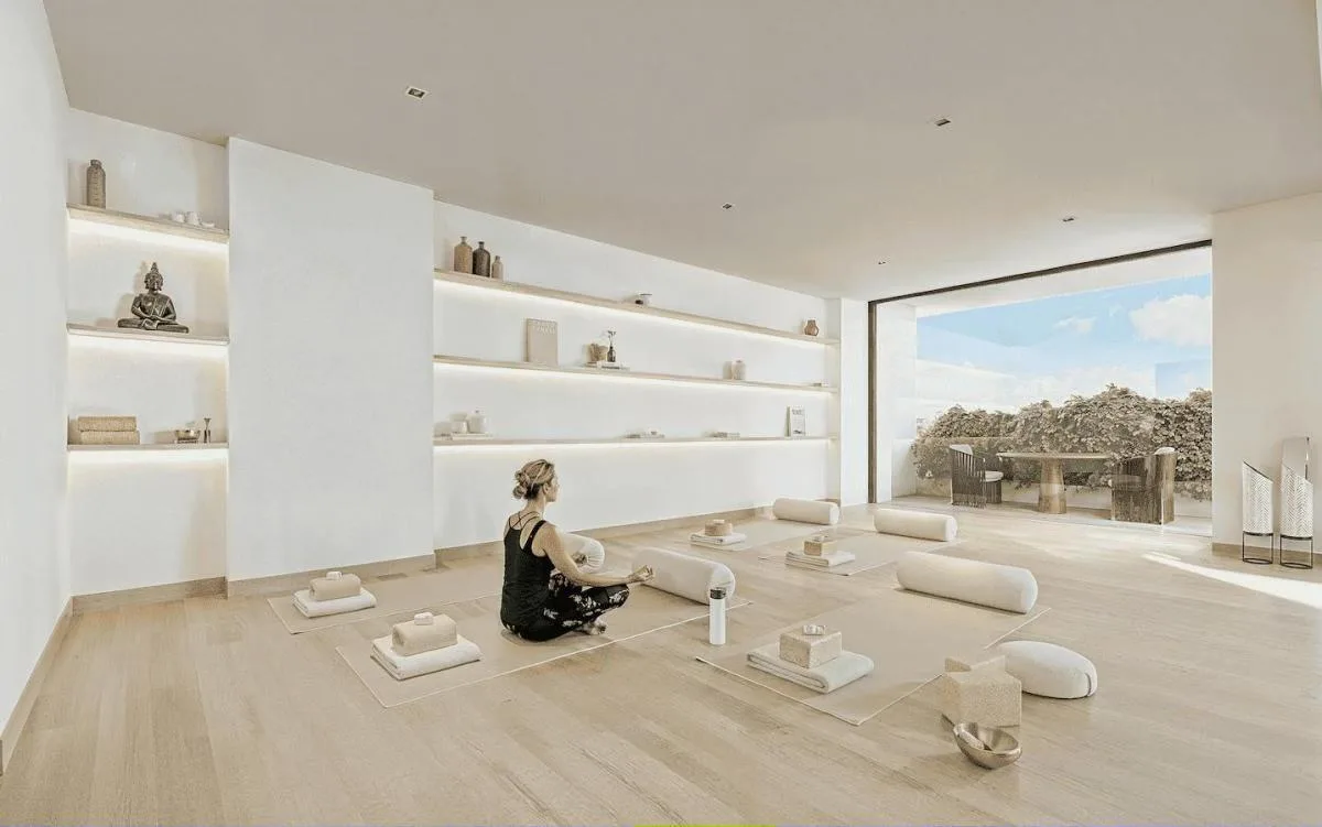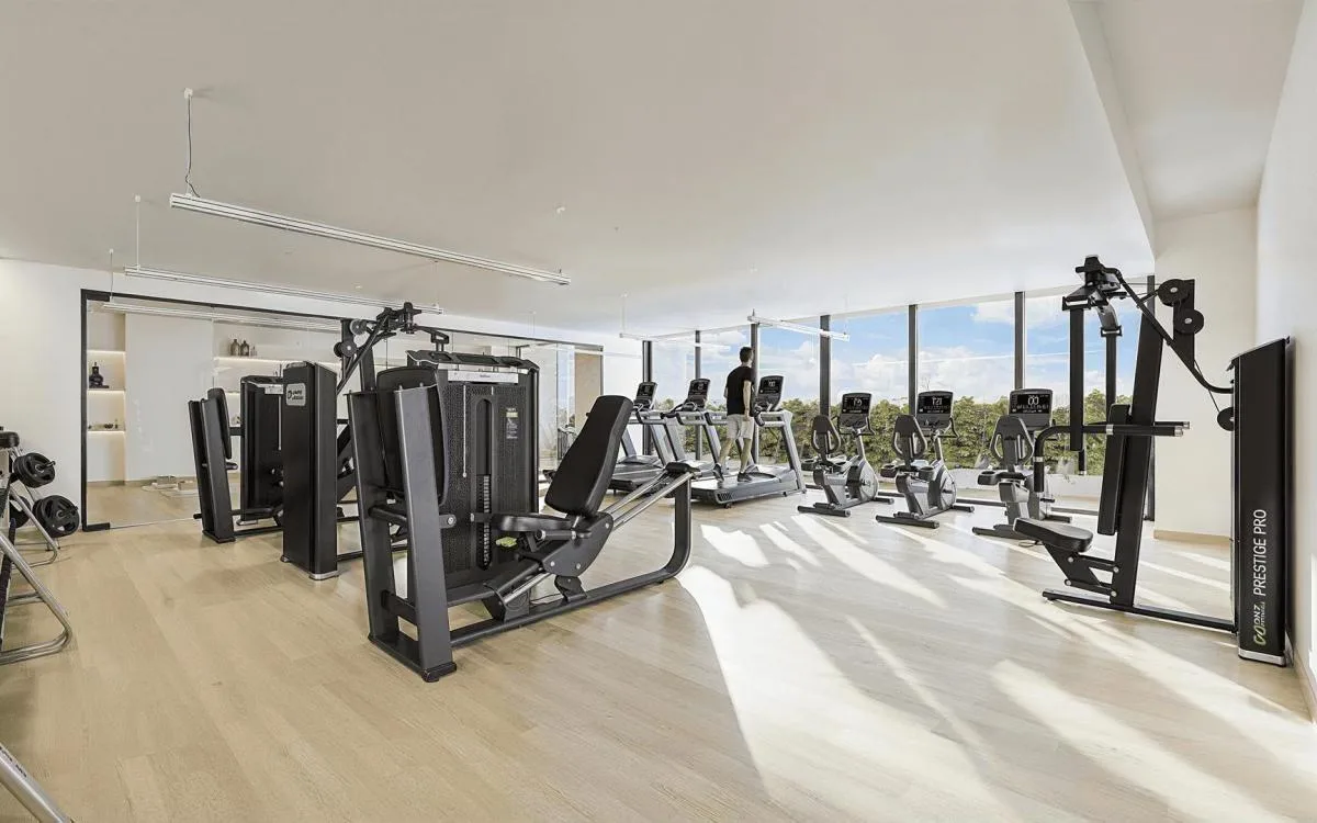 The residential complex provides a comprehensive suite of amenities, including a private marina suitable for boats, sailboats, or wave runners. There is a family swimming pool and an adult swimming pool, both with lounge areas. Recreational facilities include a children's club and play zone, a barbecue area with a fire pit, and a pet park. Additional amenities consist of a lounge bar and pool bar with panoramic views, a spa, a fully-equipped gym, a paddle tennis court, and a jacuzzi. The complex has 24-hour security with controlled access.