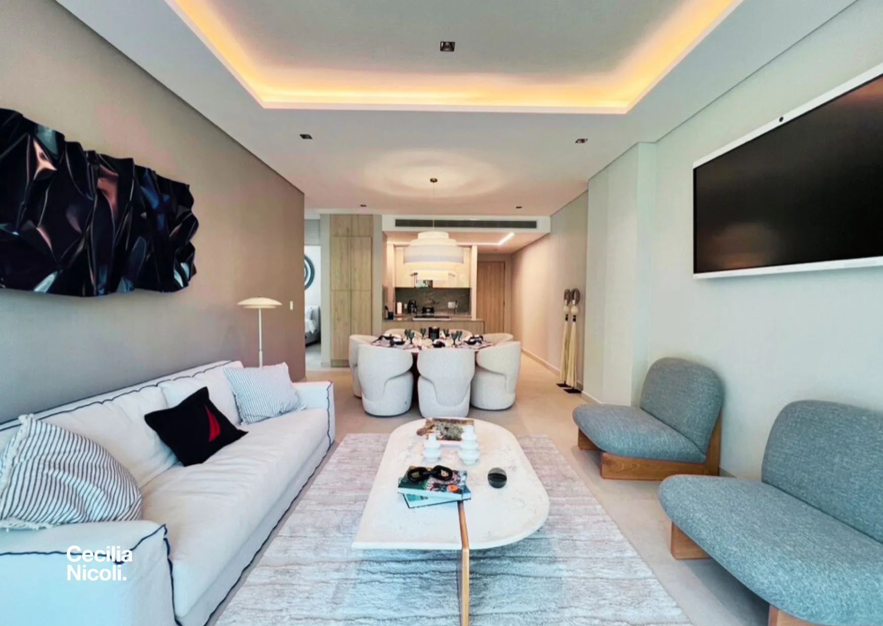 The development offers a resort-style lifestyle with over 50 amenities designed for daily enjoyment. These include a Beach Club on Isla Blanca, swimming pools for adults and children, and a rooftop with 360-degree views. Further amenities consist of a spa, gym, wellness areas, a cinema, a music hall, a speakeasy, restaurants and a cafeteria, co-working spaces, and sports courts. There is also a pet spa.