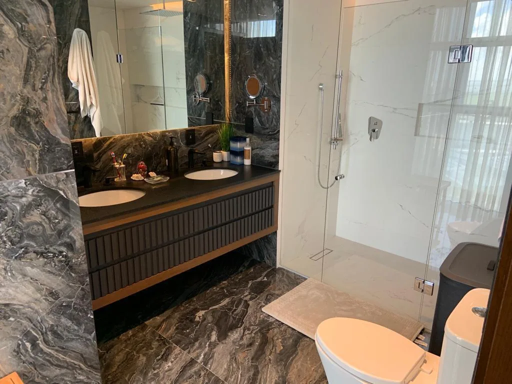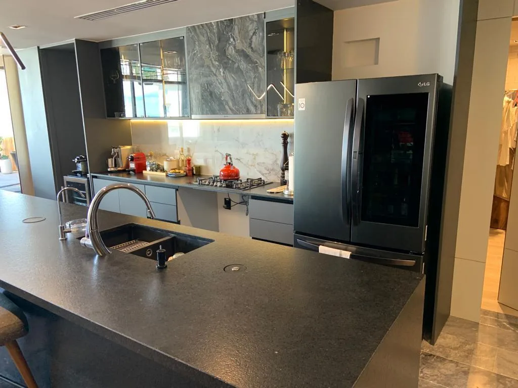 This luxury residential apartment is located on the 17th floor and features a total area of 356 square meters. Constructed in 2022, the property includes three bedrooms, three full bathrooms, one half bathroom, and three parking spaces. The unit is fully furnished, equipped, and decorated.