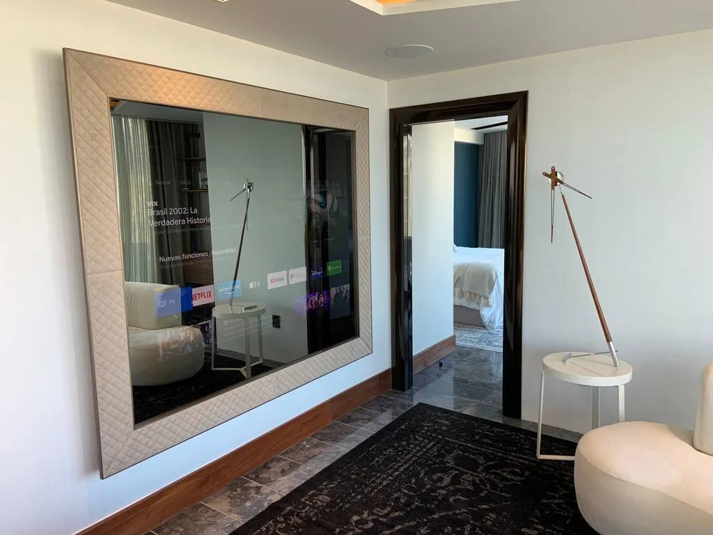 A primary feature is the panoramic terrace spanning 96. 43 square meters, which includes a private jacuzzi and offers privileged views. The unit includes premium fixtures and furnishings such as electric curtains, an integrated interior and exterior audio system, a lighting and air conditioning control system, a refrigerator and wine cooler, a washer and dryer, and a mirror television with a leather frame.